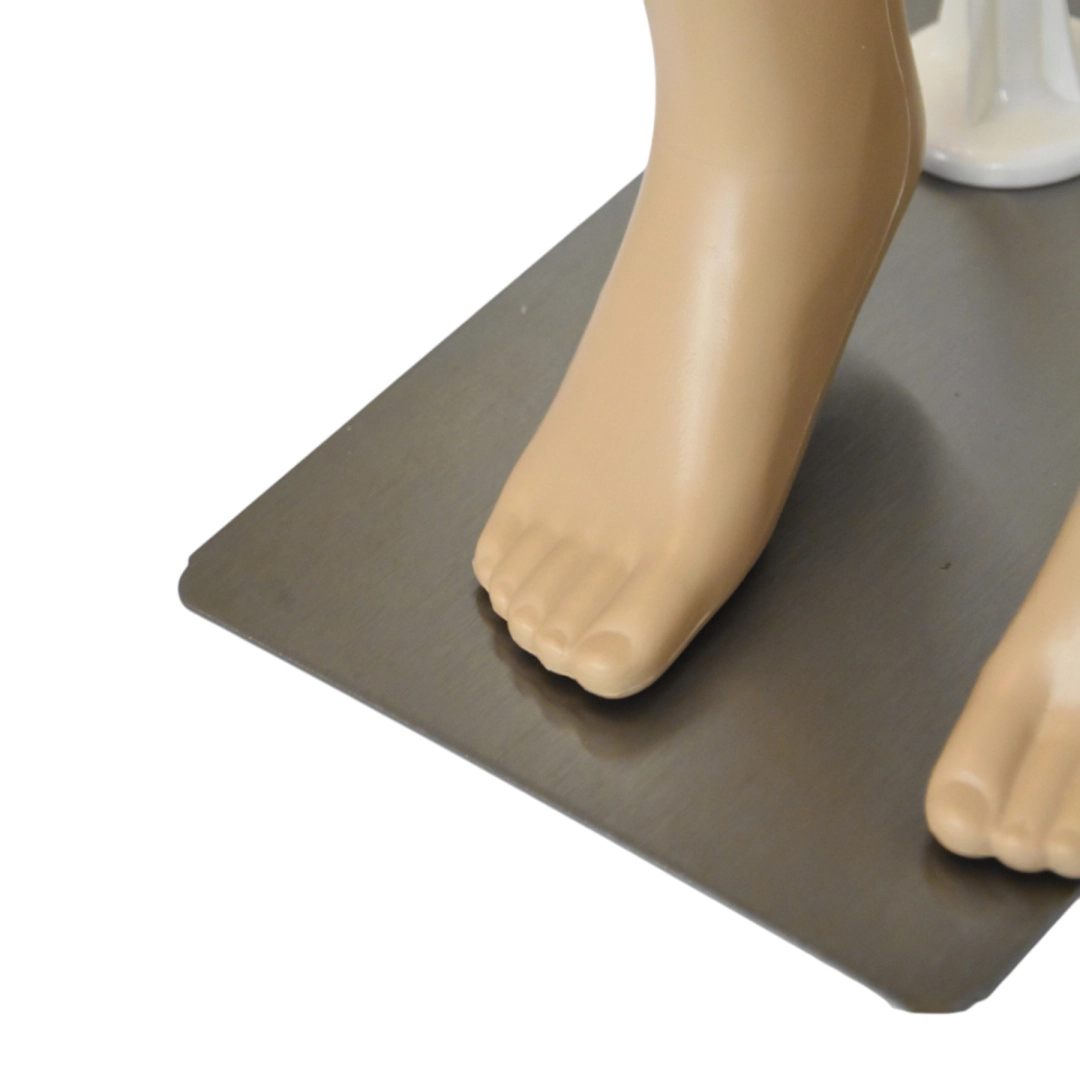 Odłączane ramiona przyspieszają przebieranie, a metalowy pręt i solidna podstawa utrzymują manekin stabilnie na miejscu zarówno w witrynie, jak i podczas fotografowania.