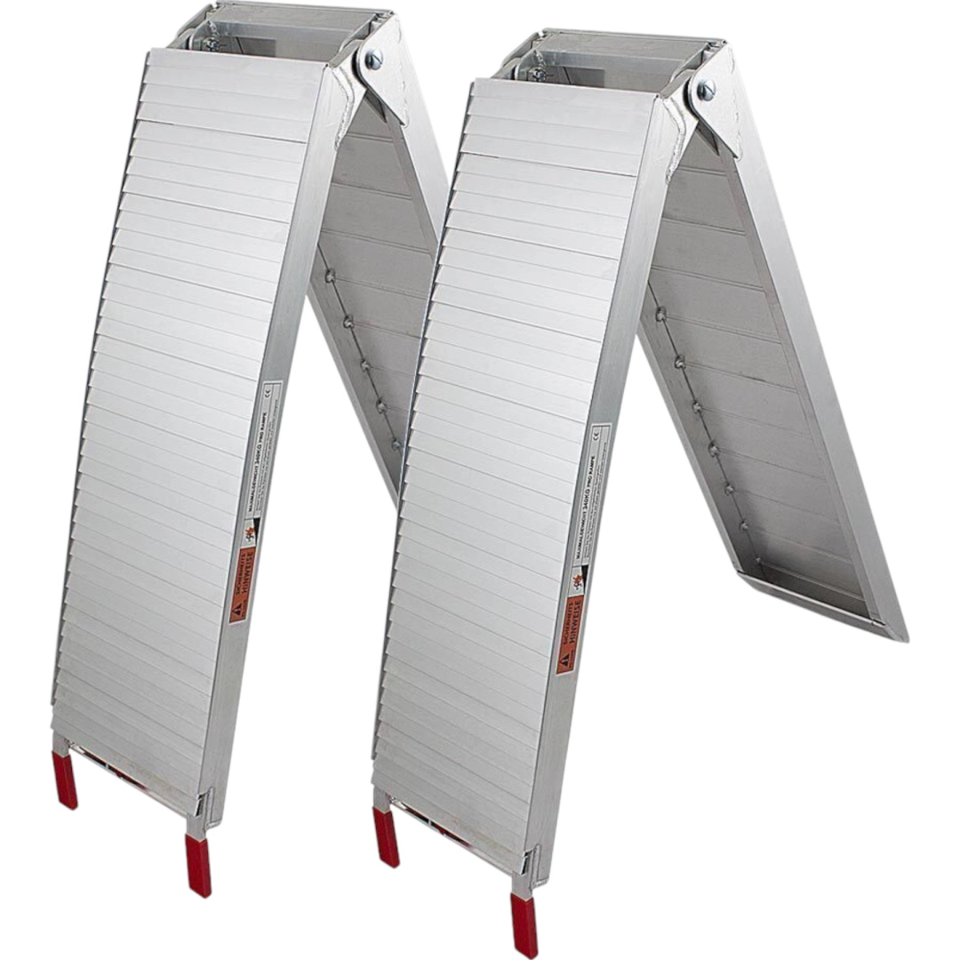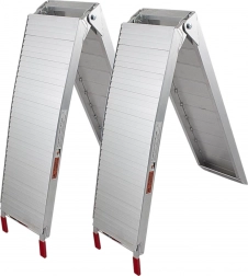 Rampy łatwo złożysz do około 115 cm, dzięki czemu bez trudu zmieszczą się w bagażniku lub garażu. Lekkie aluminium ułatwia przenoszenie i transport.