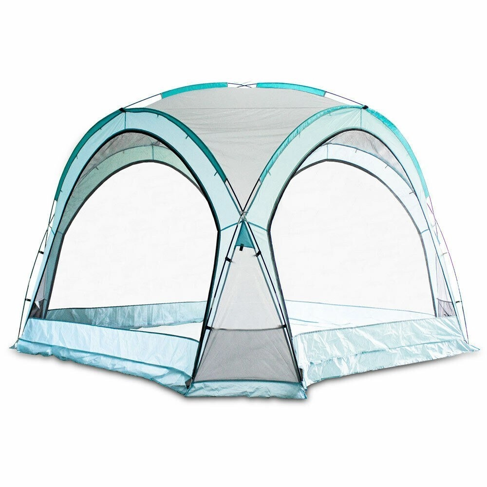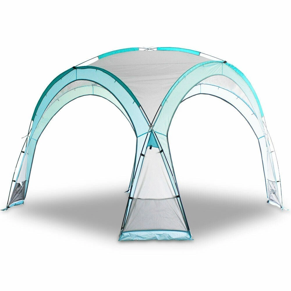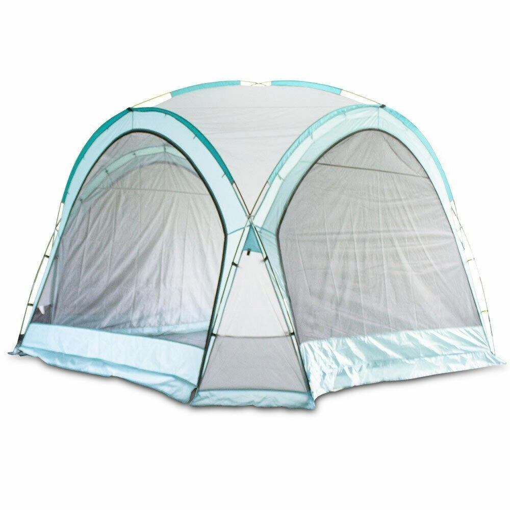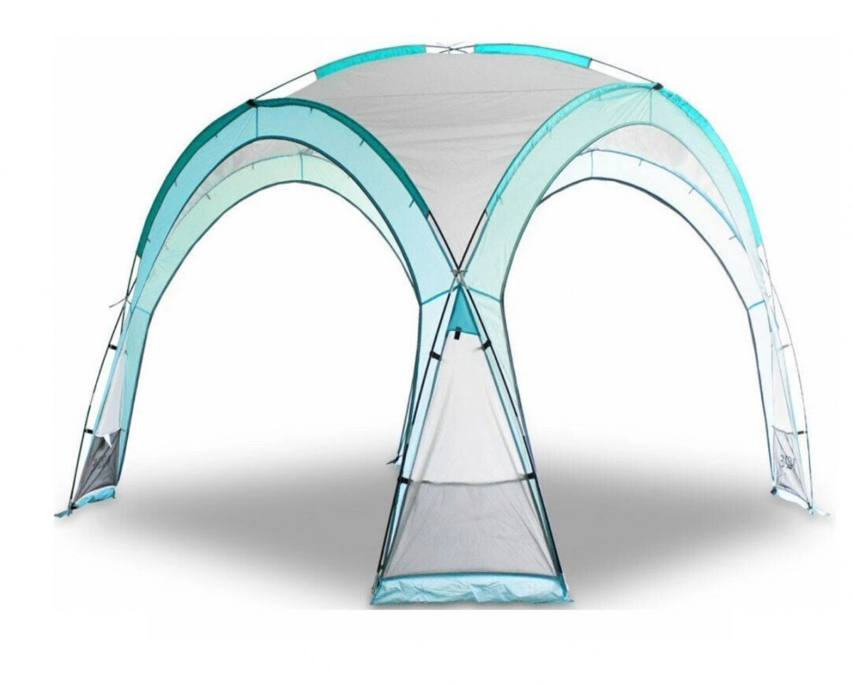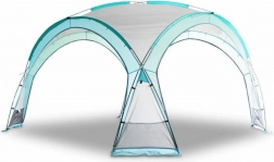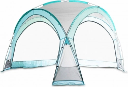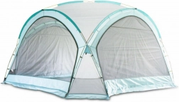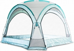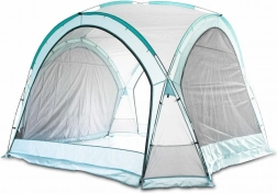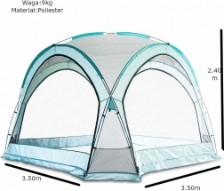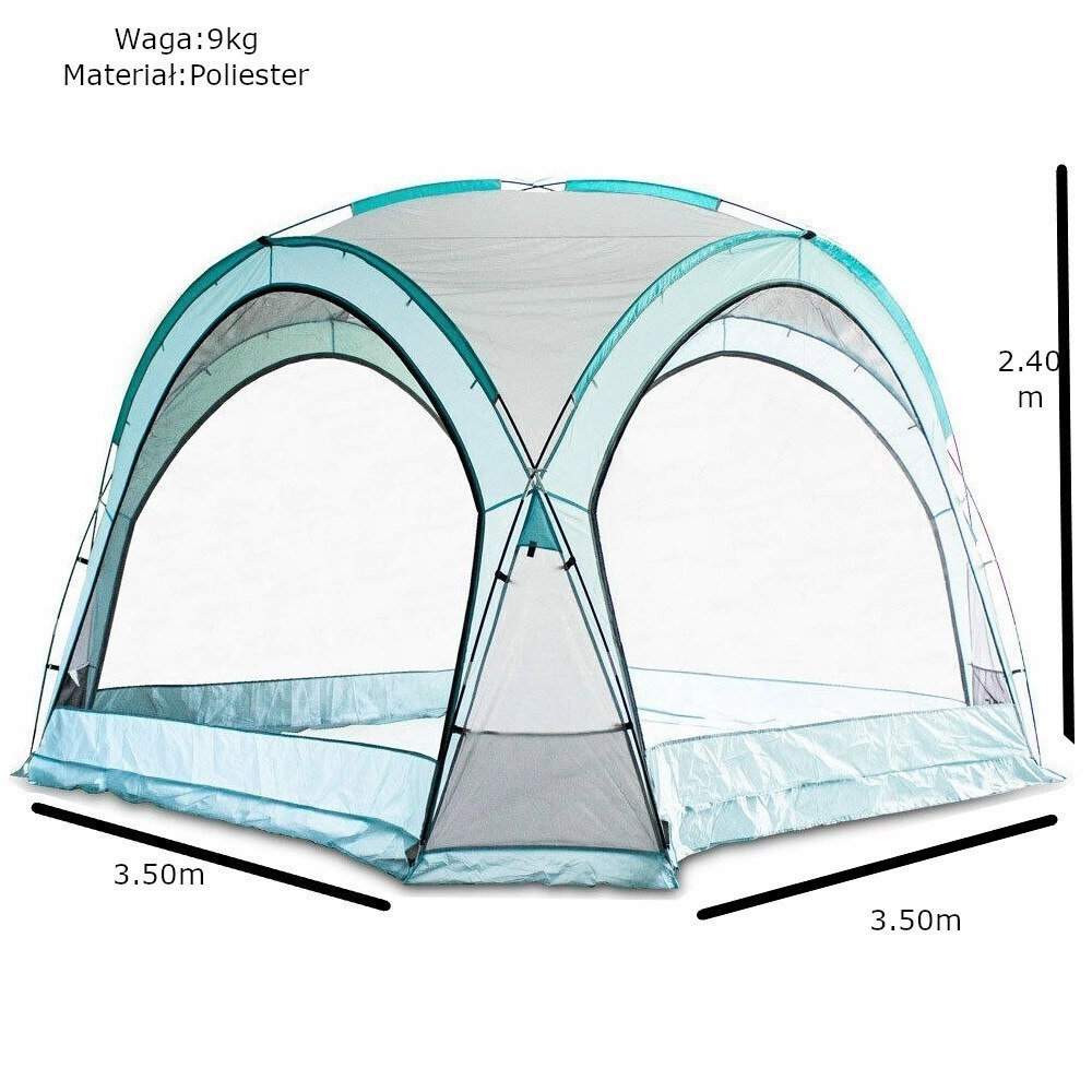 Dzięki wymiarom ok. 3,5 × 3,5 m wygodnie pomieści stół z krzesłami lub grilla. Wodoodporny poliester skutecznie odprowadza krople podczas przelotnego deszczu, a pełnowymiarowe moskitiery w ścianach wpuszczają bryzę, ale nie komary.