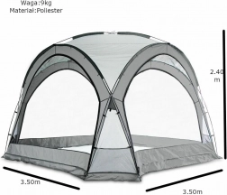 - Wygoda w każdą pogodę: wodoodporne szwy, ochrona UV i możliwość zamknięcia ścian.
