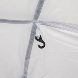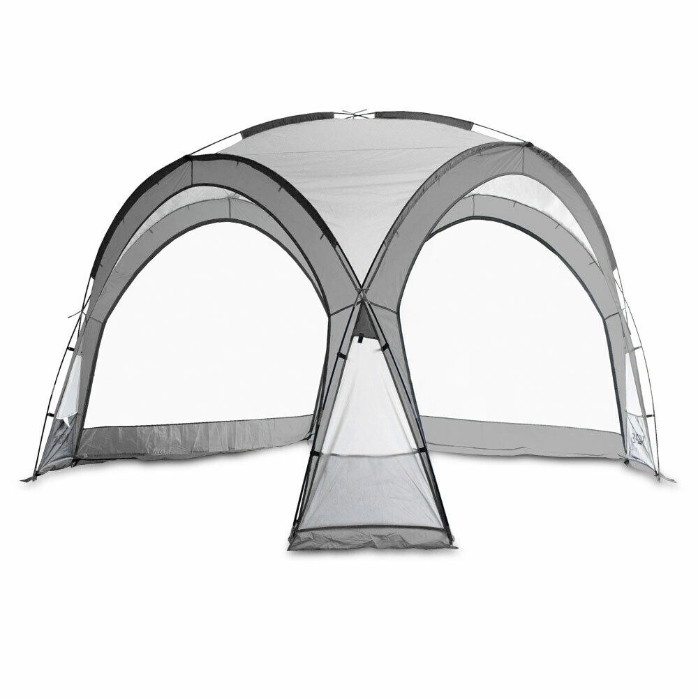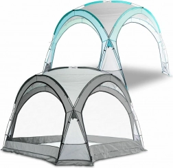 Dach ze 100% poliestru jest wodoodporny i odporny na promieniowanie UV, natomiast cztery boczne panele z moskitierą utrzymują świeże powietrze wewnątrz i nie wpuszczają uciążliwych owadów. Dwie pełne, nieprzezroczyste ściany zapewniają prywatność oraz ochronę przed wiatrem i niskim słońcem. Stabilność gwarantują pręty z włókna szklanego, które są lekkie, a jednocześnie bardzo wytrzymałe.