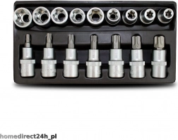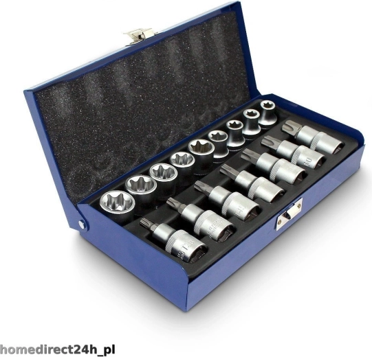 Ten solidny zestaw oferuje wszystko, co potrzebne do pracy z łącznikami torx. Nasadki i bity wykonano z wytrzymałej stali Cr‑V, co zapewnia długą żywotność, precyzyjne dopasowanie i niezawodne przenoszenie siły. Dzięki praktycznemu metalowemu pudełku wszystkie elementy są czytelnie uporządkowane i zawsze pod ręką.