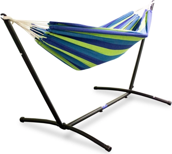 Solidna, malowana proszkowo metalowa rama bezpiecznie utrzymuje hamak na miejscu i pozwala zrelaksować się w ogrodzie, na tarasie lub balkonie.