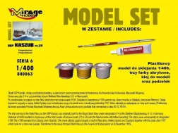 Zbuduj własny model polskiego niszczyciela ORP Kaszub z roku 1935 za pomocą tego szczegółowo wykonanego plastikowego modelu w skali 1:400. Zestaw zawiera plastikowy model do klejenia, trzy farby akrylowe, klej i pędzel.