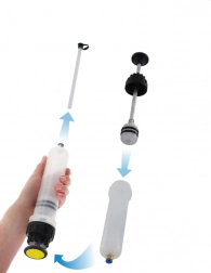 Wytrzymały korpus z tworzywa odpornego na oleje i kwasy gwarantuje długą żywotność, a ergonomiczna konstrukcja zapewnia łatwą obsługę i przechowywanie. Idealna do olejów silnikowych i przekładniowych, a także do płynu hamulcowego i chłodniczego w serwisach samochodowych, warsztatach i garażach.