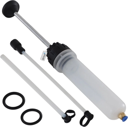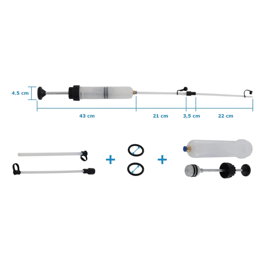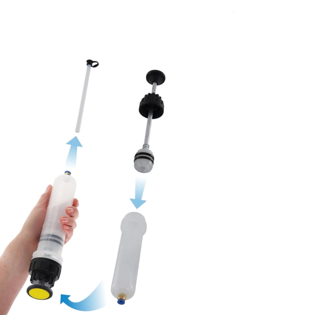 Szukasz niezawodnego narzędzia do czystego i kontrolowanego uzupełniania oraz odsysania płynów? Ta ręczna pompka olejowa o pojemności 200 ml oferuje dokładne dozowanie dzięki zintegrowanej podziałce, wysoką szczelność dzięki podwójnym gumowym uszczelnieniom oraz uniwersalne zastosowanie z parą przezroczystych przewodów PVC 1/4" i 3/8".