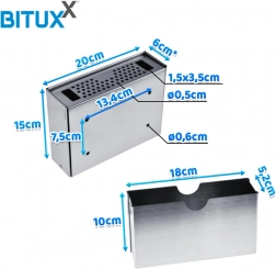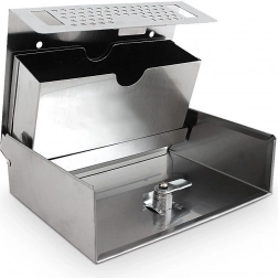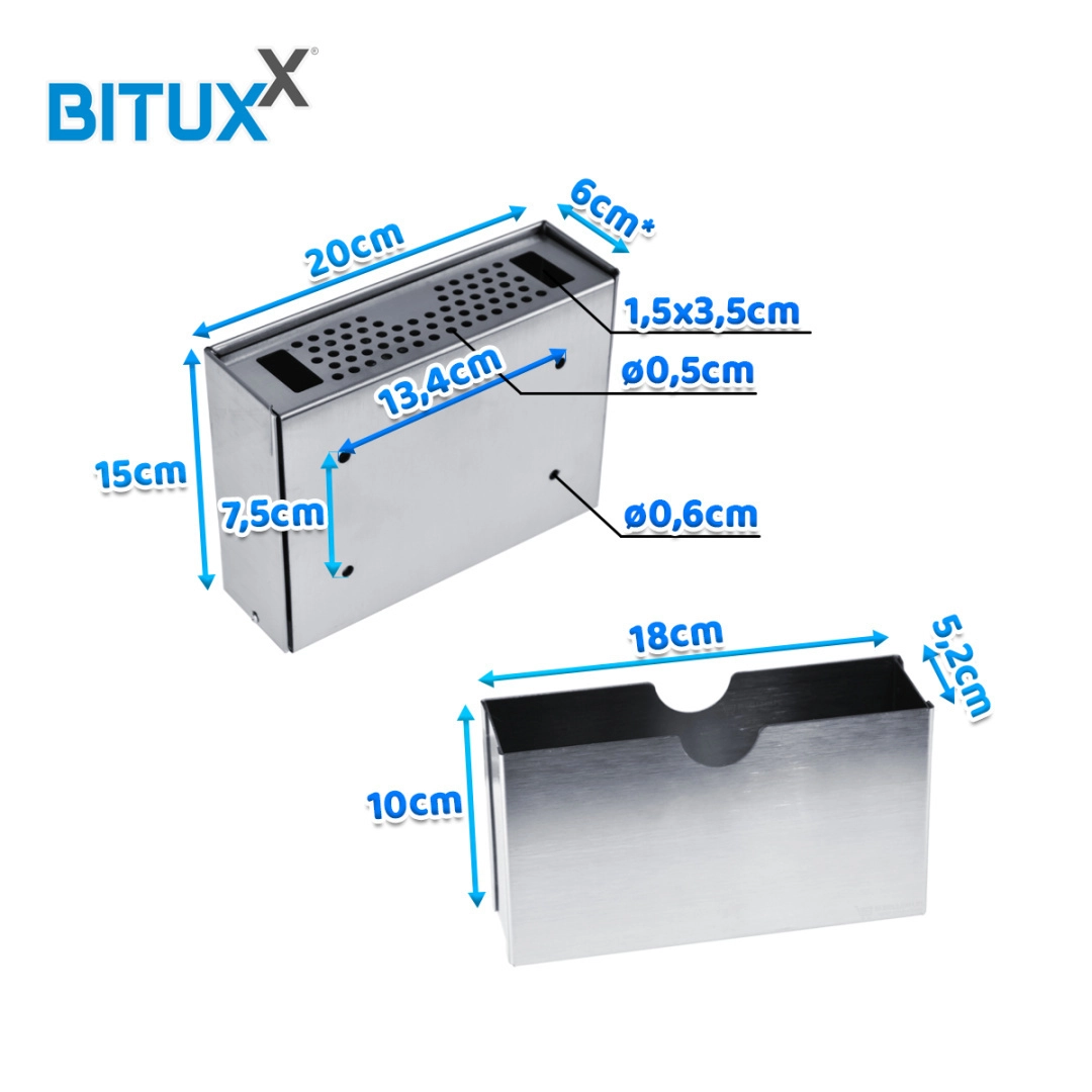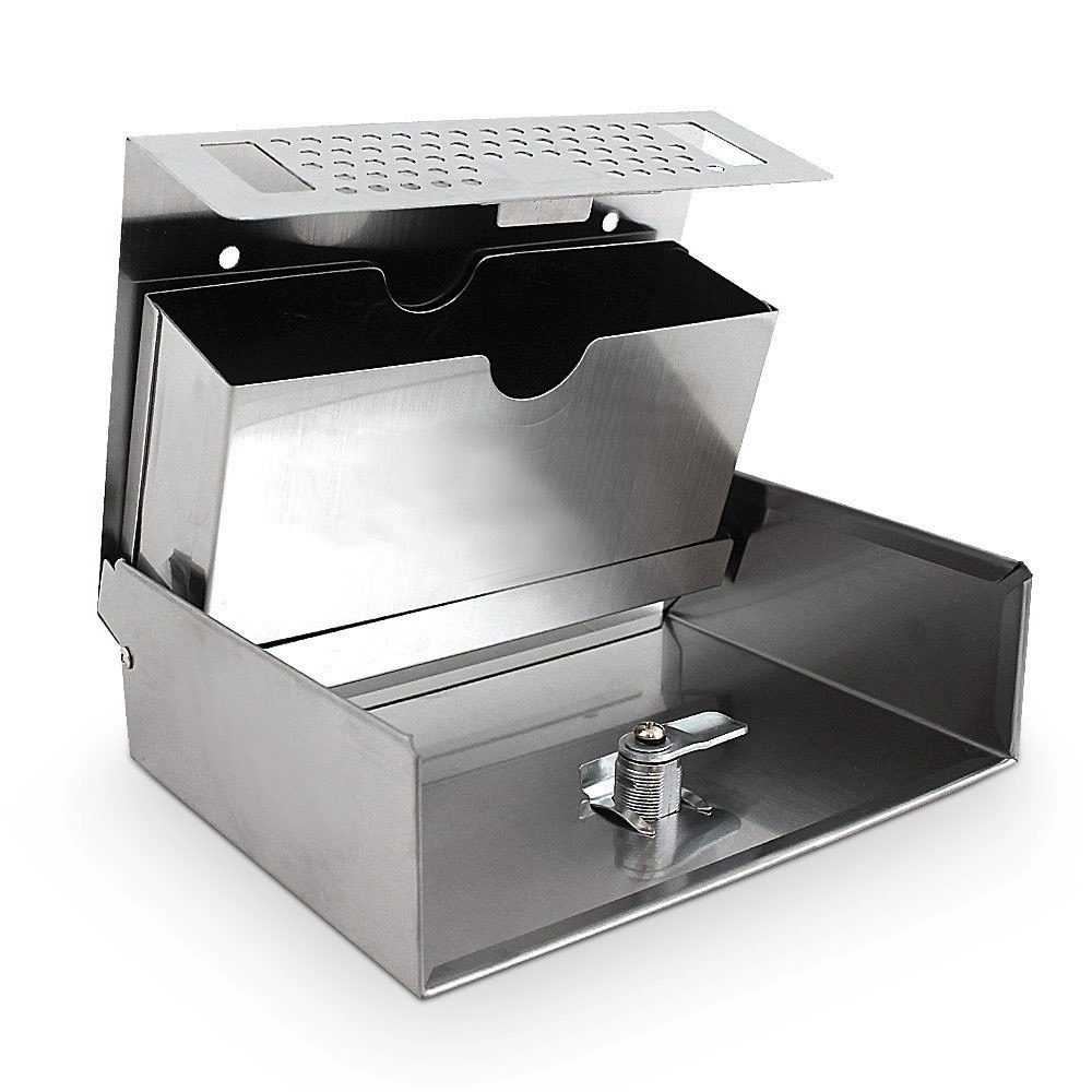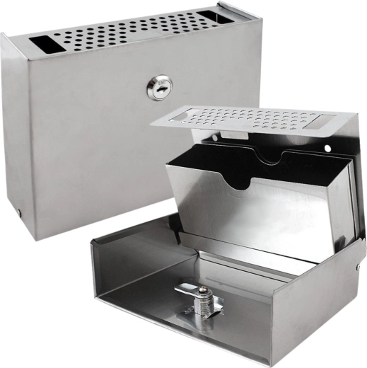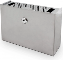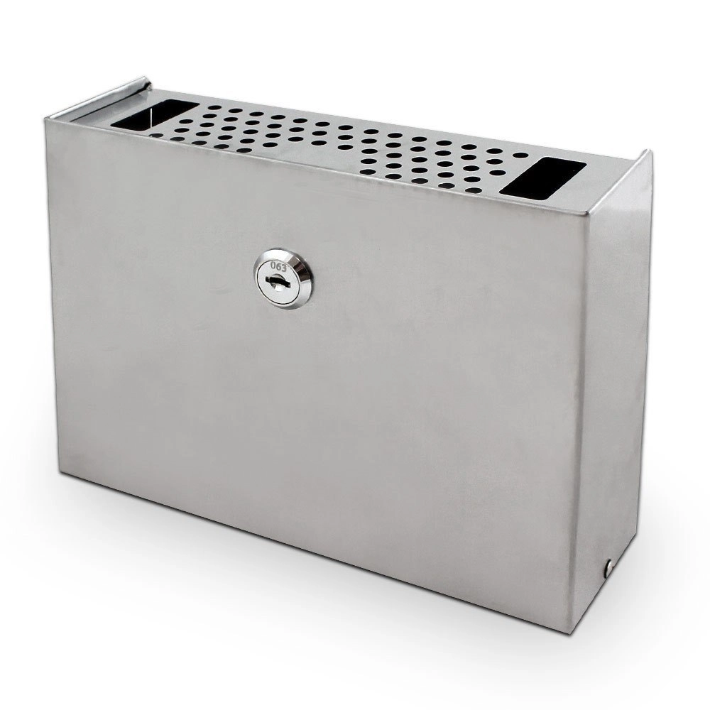 Ta kompaktowa popielniczka z wysokiej jakości stali nierdzewnej (INOX) została zaprojektowana do montażu na ścianie i codziennego użytkowania. Nowoczesny matowy, metaliczny wygląd pasuje do każdej elewacji, a perforacje wentylacyjne wspierają bezpieczną eksploatację. Zamykany panel przedni z dwoma kluczami chroni zawartość przed osobami nieupoważnionymi.