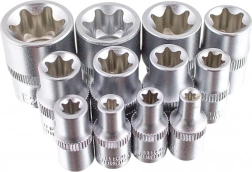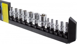 Praktyczny układ rozmiarów od E4 do E20 pokrywa większość typowych zastosowań. Nasadki mają czytelne oznaczenia rozmiarów i są kompatybilne z grzechotkami 1/4" i 3/8" dla szybkiej i efektywnej pracy.