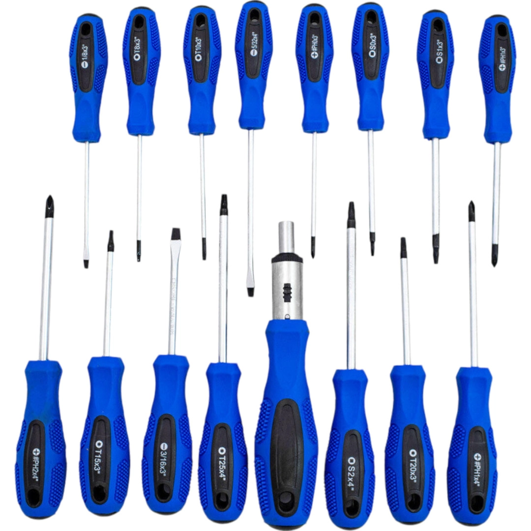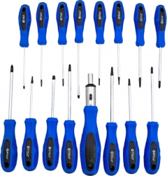 Od krzyżowych i płaskich przez TORX, PZ i imbus po nasadowe bity i precyzyjne śrubokręty – zestaw pokrywa większość zadań domowych i profesjonalnych.