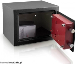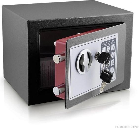 Kompaktowy elektroniczny sejf Bituxx w eleganckim grafitowym kolorze jest idealny do bezpiecznego przechowywania gotówki, dokumentów, biżuterii oraz nośników danych. Oferuje elektroniczny zamek z kodem PIN i 2 klucze awaryjne dla pewnego dostępu, podwójne ryglowanie drzwi oraz wytrzymałą stalową konstrukcję z lakierem proszkowym. Dzięki kompaktowym wymiarom 23 × 17 × 17 cm łatwo ukryjesz go w szafie lub przymocujesz do ściany.