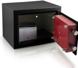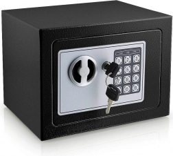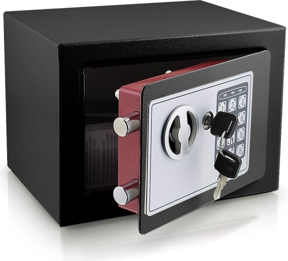 Kompaktowy elektroniczny sejf do bezpiecznego przechowywania gotówki, biżuterii, dokumentów i drobnej elektroniki. Oferuje cyfrową klawiaturę z kodem PIN oraz klucze awaryjne do zapasowego dostępu. Dzięki stalowej konstrukcji i podwójnym stalowym ryglom zapewnia niezawodną ochronę. Kompaktowe wymiary umożliwiają łatwy montaż w meblach, na ścianie lub pod blatem – idealny do domu, biura i pensjonatu.