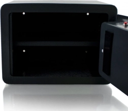 Solidny korpus ze stali (2 mm) i drzwi (3 mm) z podwójną blokadą chronią zawartość przed nieuprawnionym dostępem. Wnętrze jest przejrzyste i odpowiednie do przechowywania dokumentów, paszportów, gotówki, nośników danych i biżuterii.
