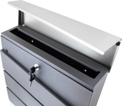 Szeroki wrzut i duże uchylne drzwiczki zapewniają łatwe wrzucanie i wyjmowanie, także przy większej ilości poczty i kopert.