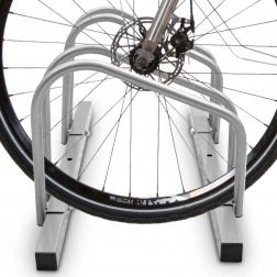 Szerokie łuki U i rozstaw 30 cm utrzymują rowery w pozycji pionowej, zapobiegają kontaktowi ram i ułatwiają blokowanie zamkiem.