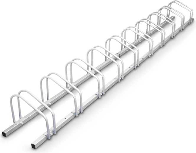 Zorganizuj rowery dla rodziny, firmy lub wspólnoty mieszkaniowej za pomocą praktycznego stojaka na 10 rowerów. Dzięki parkowaniu dwustronnemu, ocynkowanej ochronie przed korozją oraz montażowi na ścianie i podłodze idealnie sprawdzi się wewnątrz i na zewnątrz. Oferuje stabilną konstrukcję, rozstaw 30 cm chroniący przed otarciami i kompatybilność z oponami 35–60 mm.