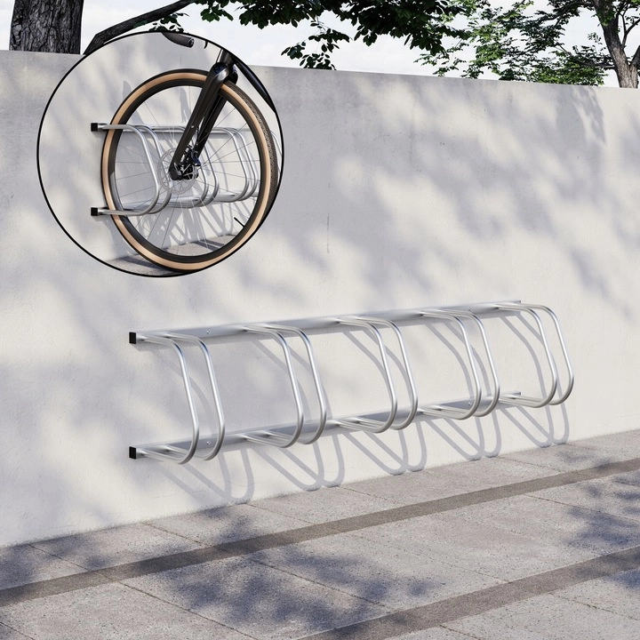 Szerokość dla opon 35–60 mm i rozstaw ok. 30 cm zapewniają wygodne parkowanie rowerów szosowych, trekkingowych i górskich bez niechcianych otarć. Wysokiej jakości materiał i mocne rurki gwarantują doskonałą stabilność, aby rowery stały pewnie i nie groziło im przewrócenie.