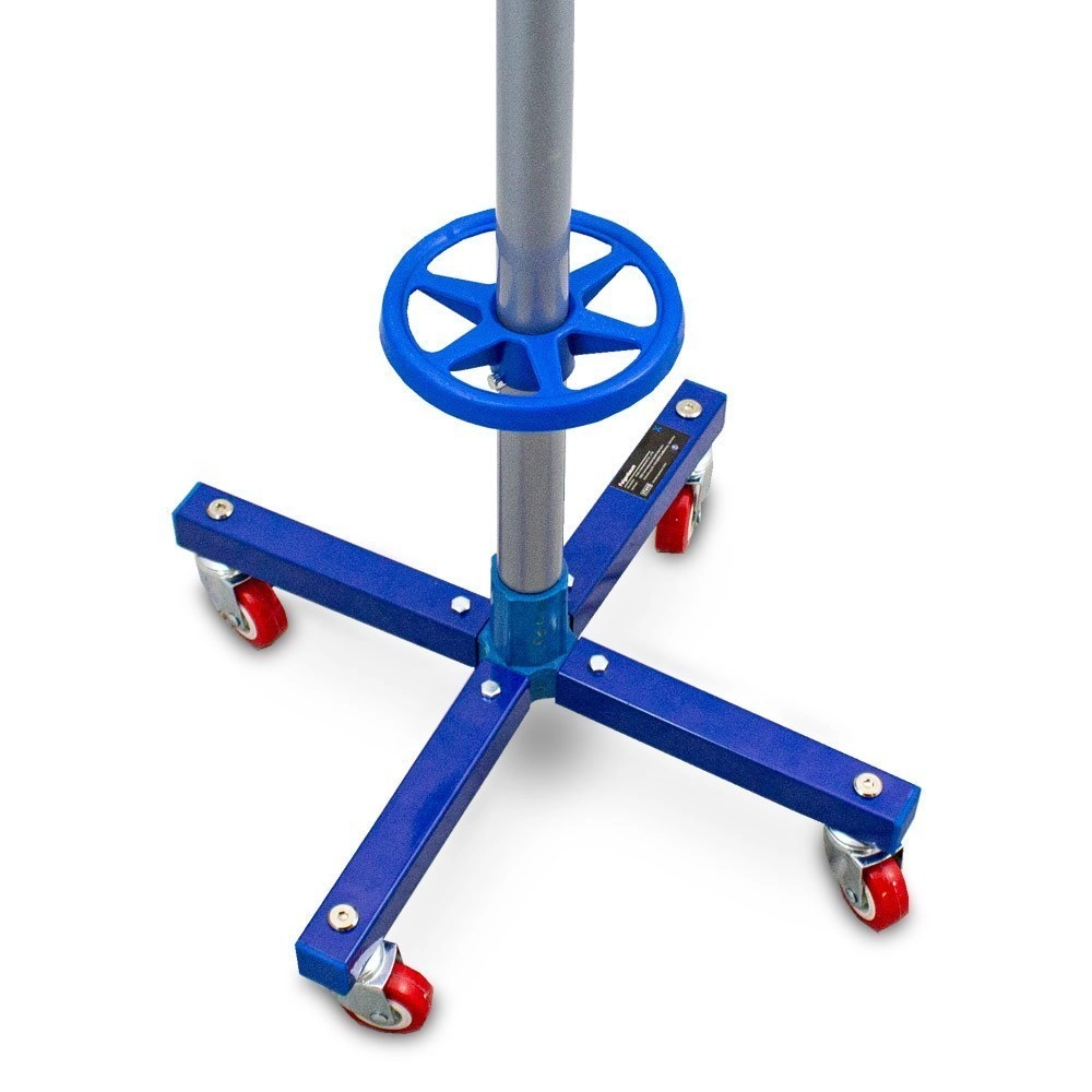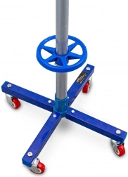 Krzyżowa podstawa z czterema obrotowymi kółkami umożliwia płynne przemieszczanie nawet w wąskich przestrzeniach. Idealna do garaży i warsztatów, gdzie liczy się każdy centymetr.