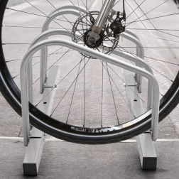 Wiele łukowych pozycji utrzymuje przednie koło pionowo i zapewnia odstęp 30 cm między rowerami, chroniąc przed otarciami.