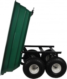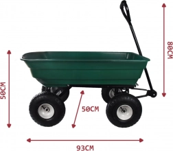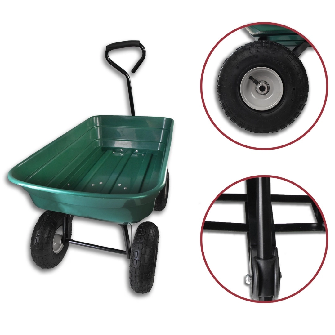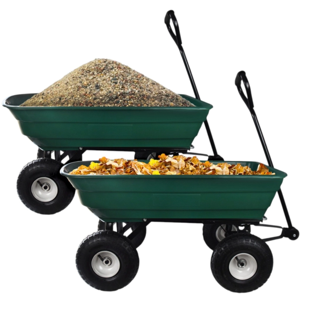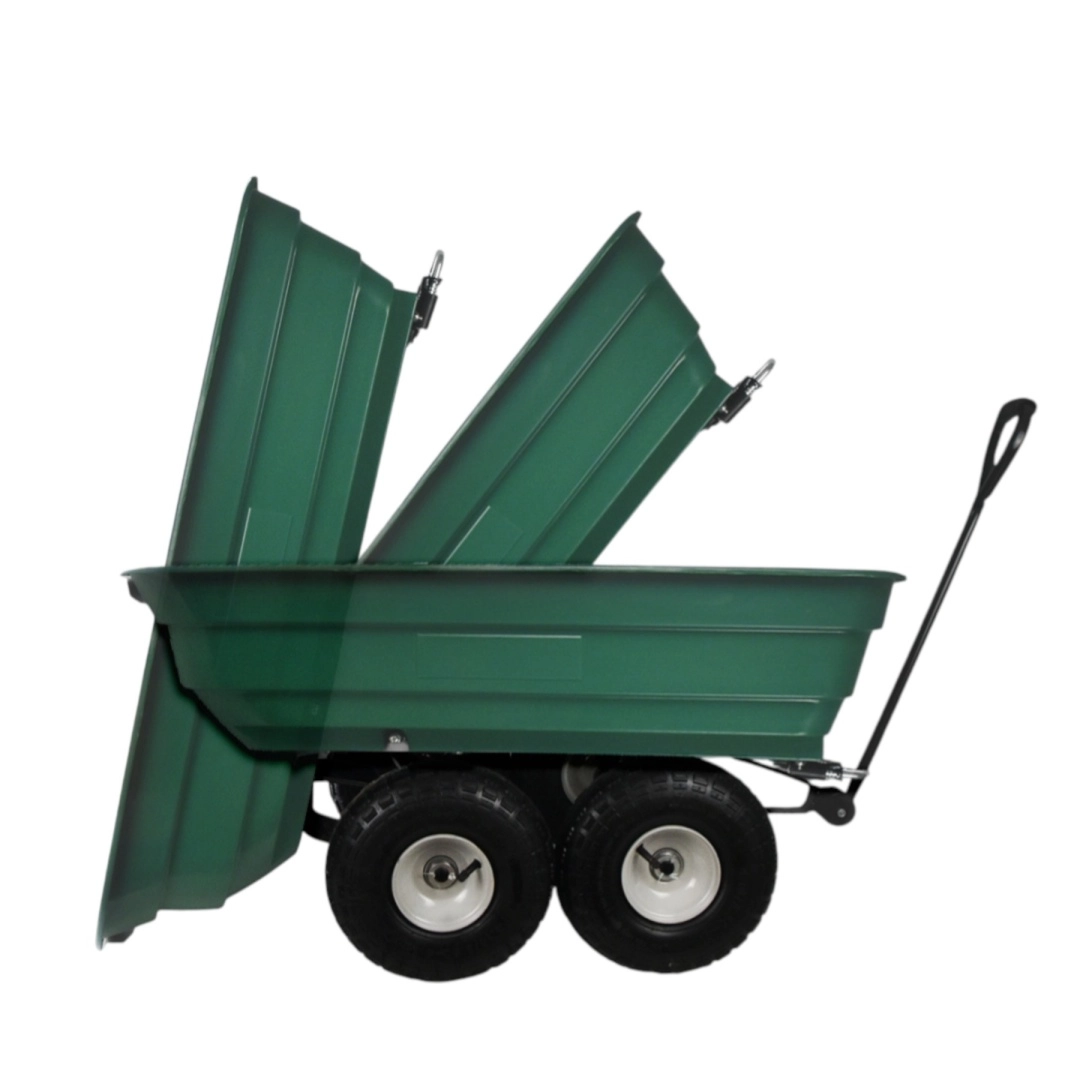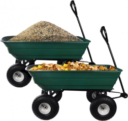 - Konstrukcja 3 w 1: taczka, wózek ogrodowy i wywrotna przyczepka w jednym