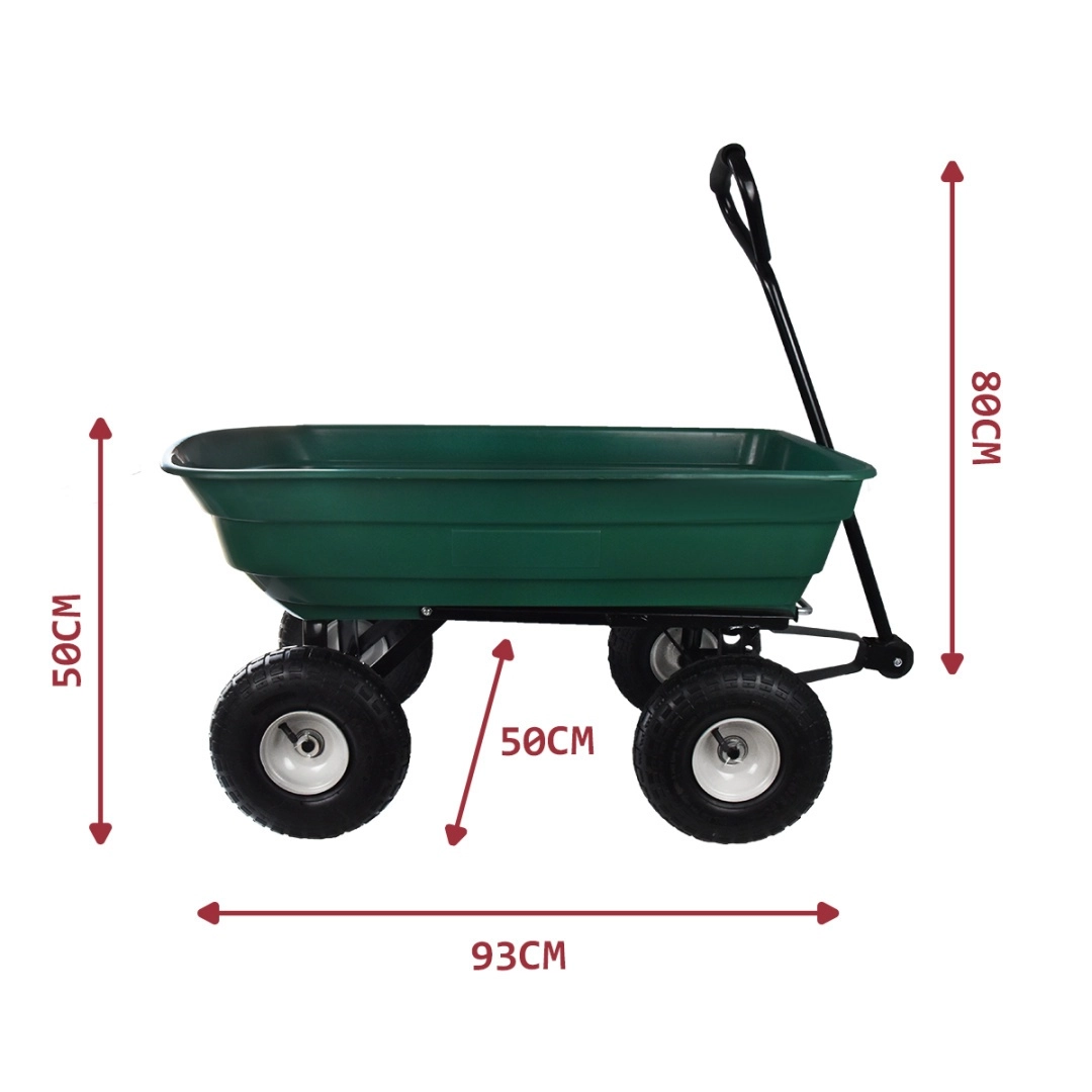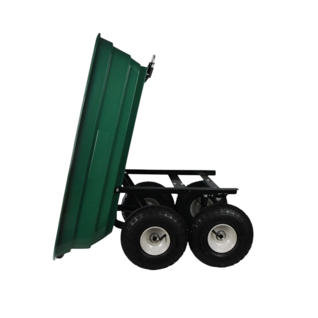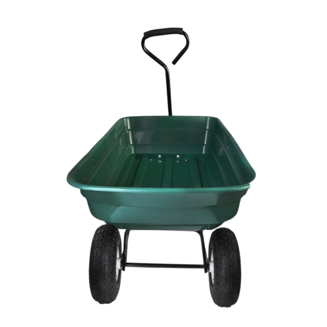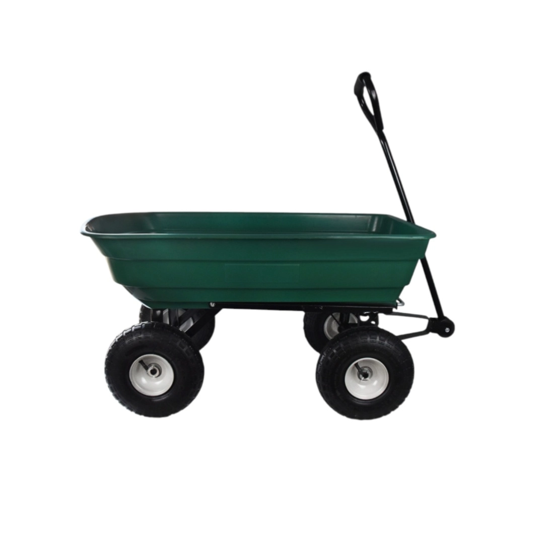 - Konstrukcja 3 w 1: taczka, wózek ogrodowy i wywrotna przyczepka w jednym