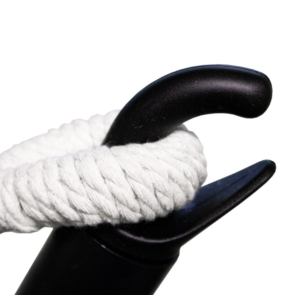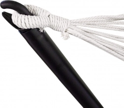 Wysokiej jakości metalowe haki i plecione liny stabilnie utrzymują hamak na miejscu i wydłużają jego żywotność.