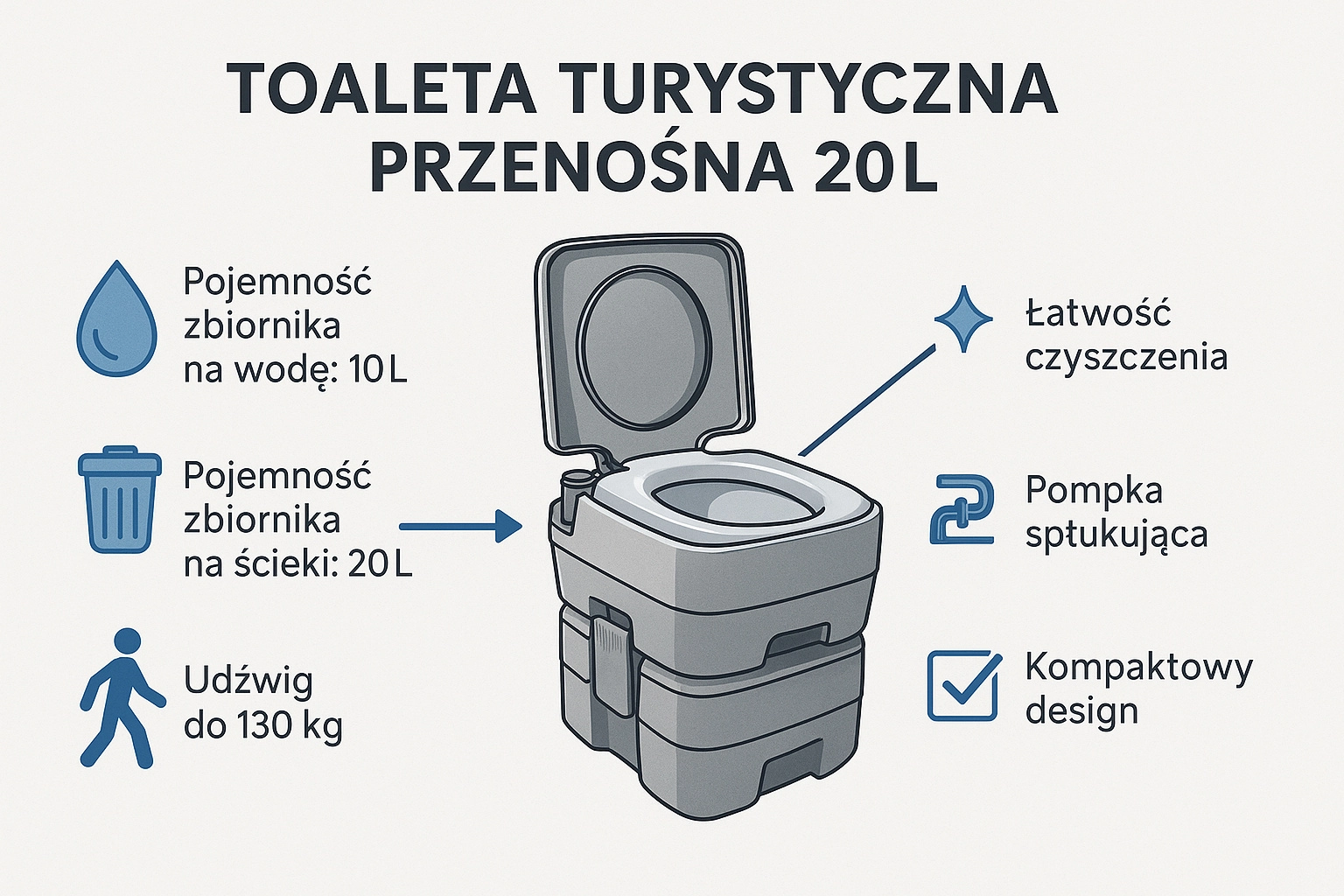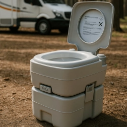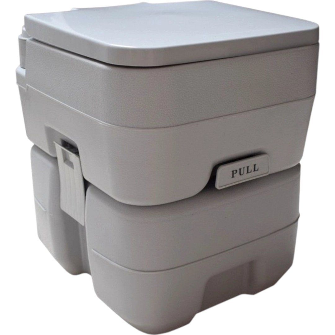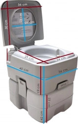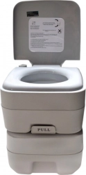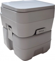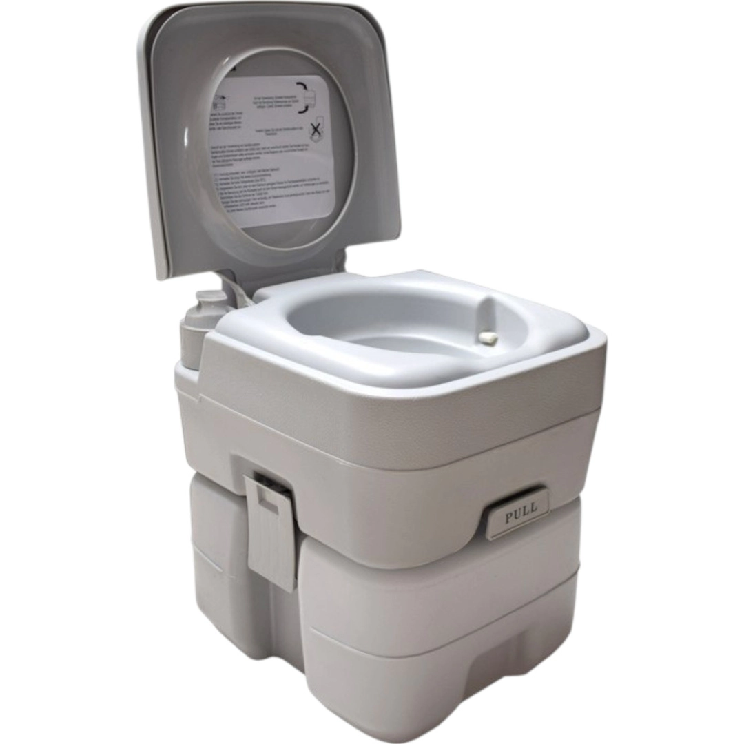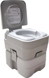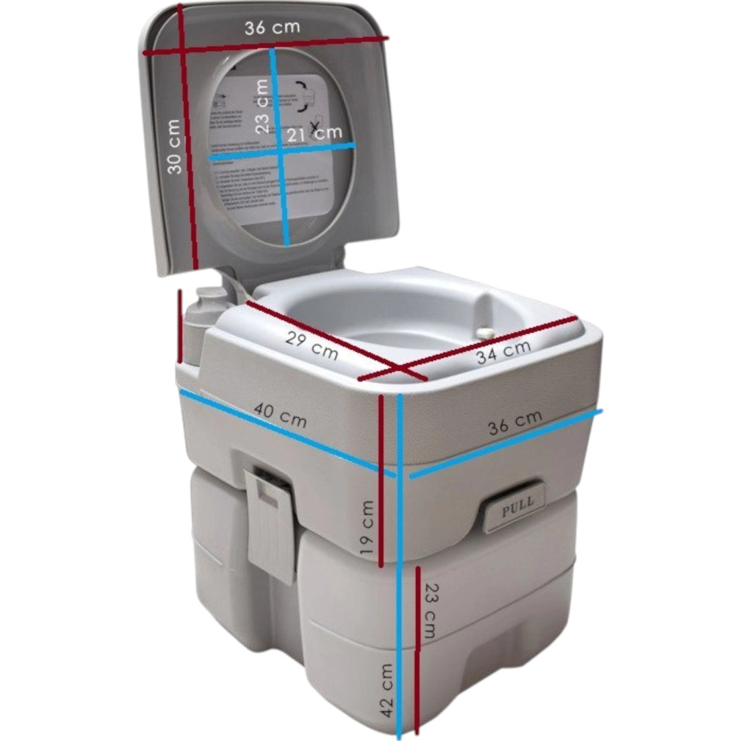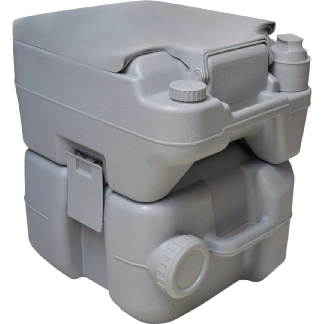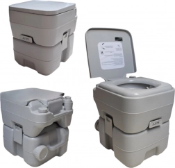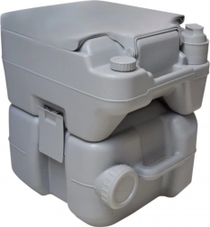 Korzyść z wolności podróżowania bez kompromisów. Przenośna toaleta ze zbiornikiem na świeżą wodę 10 l i zbiornikiem na odpady 20 l oferuje komfort domowej toalety tam, gdzie brak infrastruktury. Stabilne, dwuczęściowe rozwiązanie łączy się dzięki bocznym klamrom, jest szczelne i łatwe do przenoszenia. Idealna na kemping, do kampera, na łódź, do ogrodu, na budowę czy działkę.