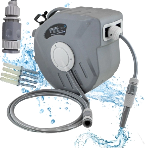 - Wszystko w zestawie: wąż, bęben z automatyką i akcesoria montażowe.