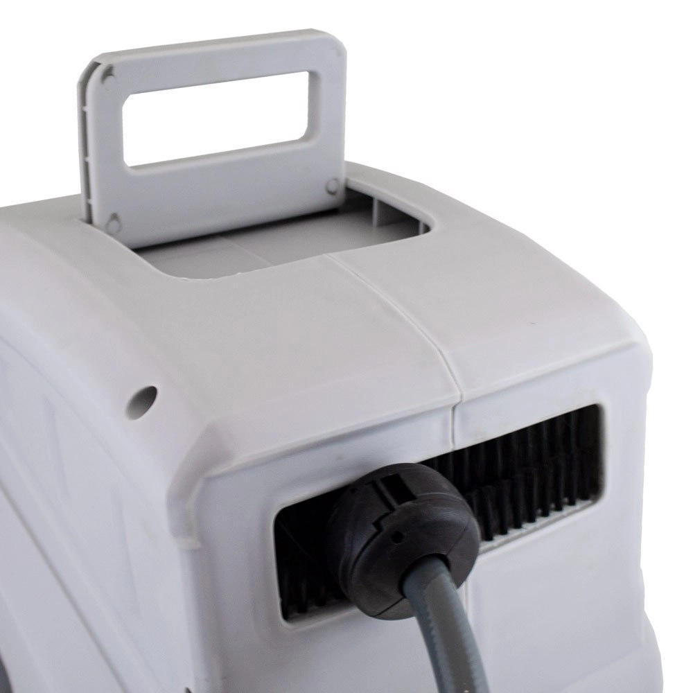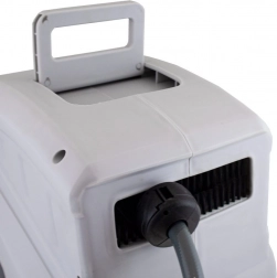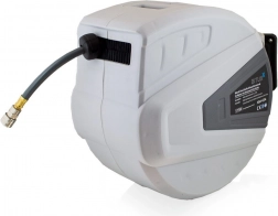Wytrzymała obudowa z tworzywa chroni mechanizm zwijania, a elastyczny wąż PVC z szybkozłączką 1/4" zapewnia niezawodne podłączenie do kompresora i narzędzi pneumatycznych. Uporządkowane prowadzenie węża zwiększa bezpieczeństwo pracy, zmniejsza zużycie i wydłuża żywotność.