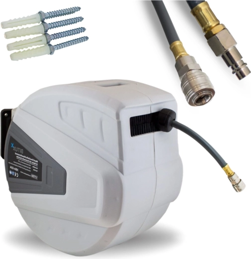 Automatyczna zwijarka pneumatyczna z wężem o długości 30 m to idealny wybór do warsztatów, garaży i serwisów. Montaż ścienny oszczędza miejsce, a zintegrowany uchwyt obrotowy (ok. 180°) umożliwia swobodne poruszanie się po przestrzeni bez załamywania węża. Po zakończeniu pracy wystarczy krótkie pociągnięcie, a mechanizm szybko i bezpiecznie zwinie wąż.