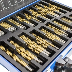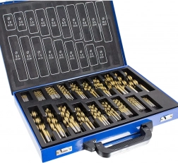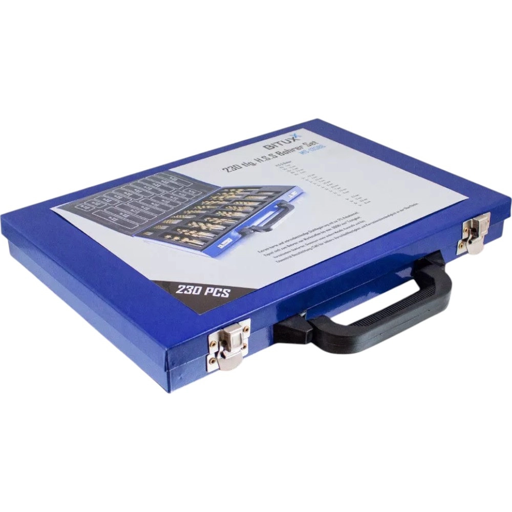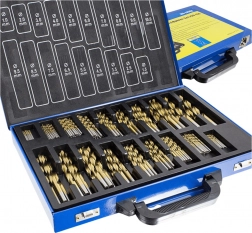 Profesjonalny zestaw 230 kobaltowych wierteł z powłoką tytanową w wytrzymałej metalowej walizce obejmuje zakres 1–10 mm. Zapewnia wysoką żywotność, odporność na wysoką temperaturę i precyzyjne wiercenie w metalu, drewnie i plastiku – idealny do warsztatu, na budowę i do serwisu.