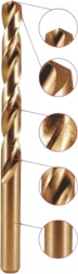 Wysoka zawartość kobaltu umożliwia wiercenie w wymagających materiałach i zapewnia odporność na przegrzewanie do twardości ok. 900 N/mm².