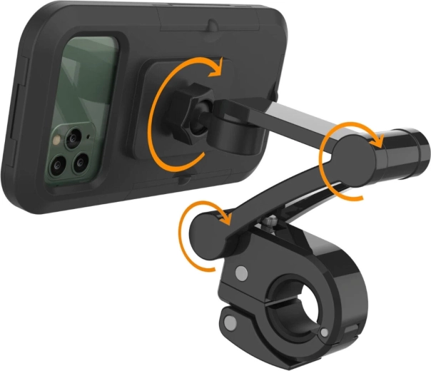 Montaż jest szybki i bezpieczny – kompatybilny z większością rowerów z kierownicą o średnicy 22–28 mm. Etui jest wodoodporne, więc Twój telefon pozostanie suchy i w pełni funkcjonalny. Zachowany jest dostęp do ekranu dotykowego, aparatu i regulacji głośności, abyś mógł korzystać z nawigacji, muzyki i aplikacji sportowych bez ograniczeń.