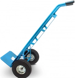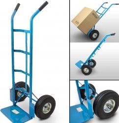 Koła pneumatyczne ze stalowymi obręczami skutecznie pochłaniają wibracje i dobrze radzą sobie z nierówną nawierzchnią, a solidna stalowa konstrukcja wytrzymuje intensywne użytkowanie. Prosty montaż sprawia, że wózek szybko przygotujesz do pracy zaraz po dostawie.
