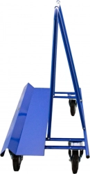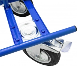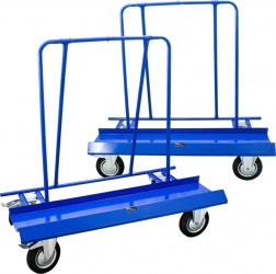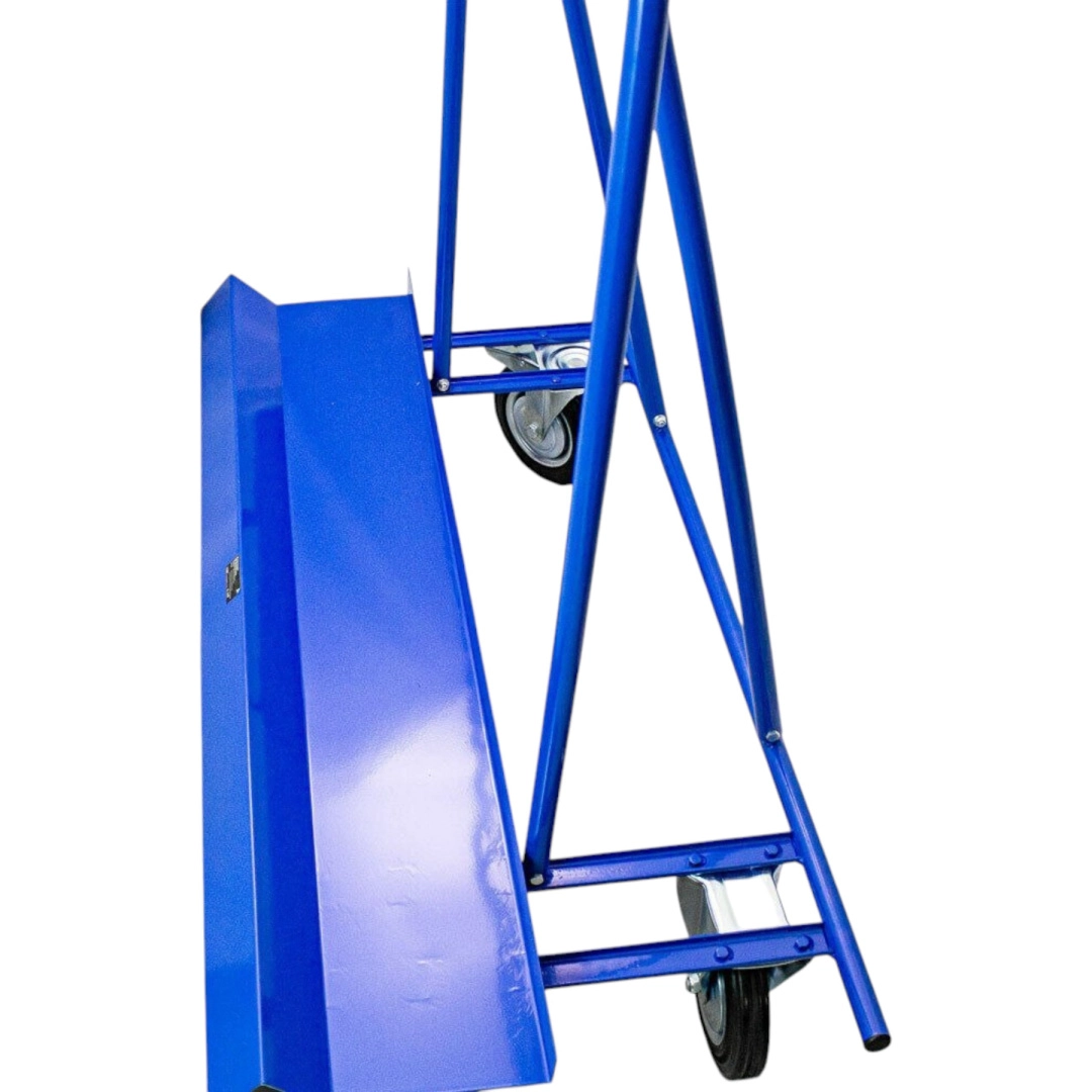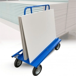 Skośna krawędź ładunkowa i rama podpierająca zapewniają bezpieczne ułożenie płyt i drzwi podczas przemieszczania, a kompaktowe wymiary umożliwiają wygodny przejazd nawet przez wąskie przestrzenie. Duże koła lepiej pokonują nierówności i zapewniają płynny ruch także przy pełnym obciążeniu.