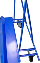 Mocna stalowa konstrukcja i stabilna platforma umożliwiają bezpieczny transport nawet bardzo ciężkich i dużych paneli oraz drzwi bez ryzyka przewrócenia.