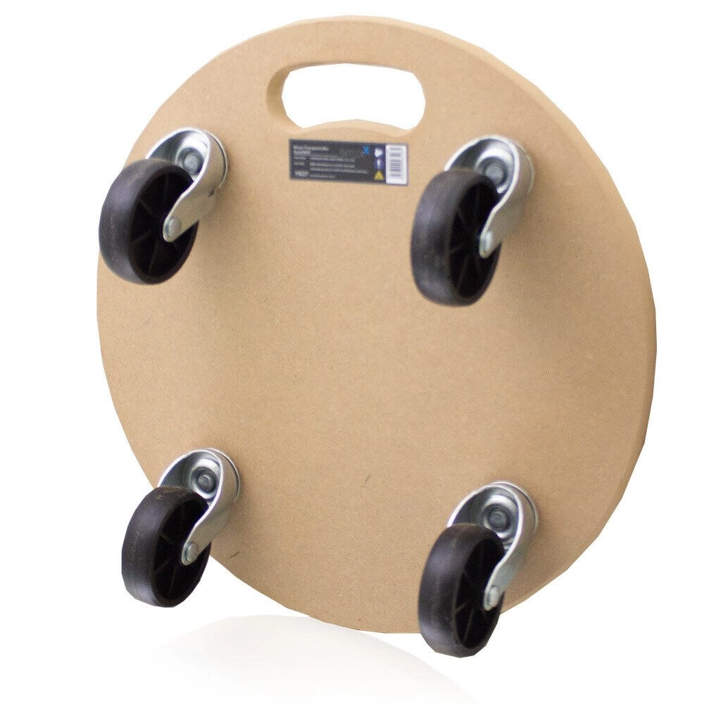 Koniec z mozolnym podnoszeniem ciężkich przedmiotów. Ten kompaktowy, a jednocześnie solidny okrągły wózek o wymiarach 38 × 38 cm dzięki obrotowym kółkom porusza się płynnie we wszystkich kierunkach i umożliwia łatwe manewrowanie nawet w ciasnych przestrzeniach. Zintegrowany uchwyt ułatwia przenoszenie i przechowywanie.