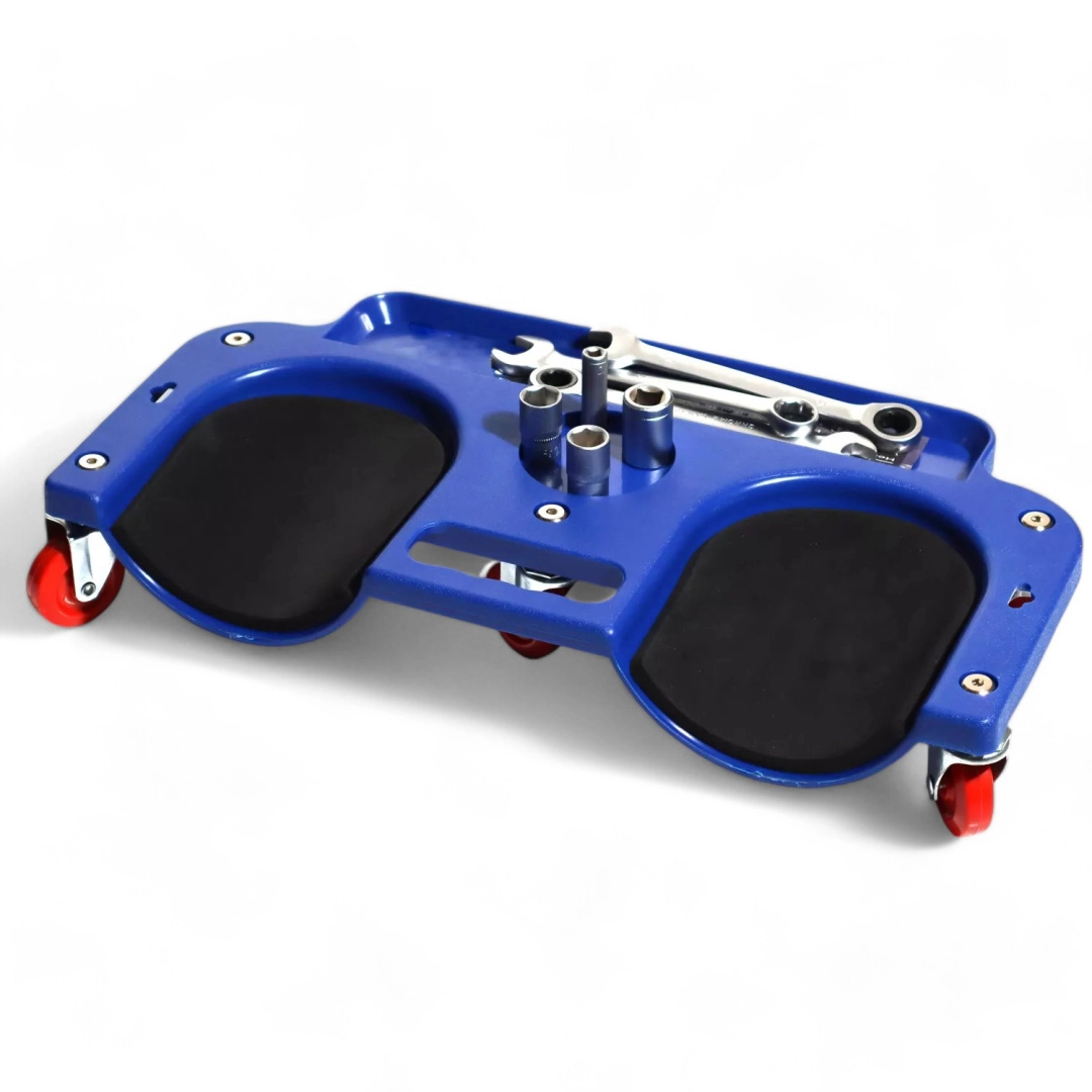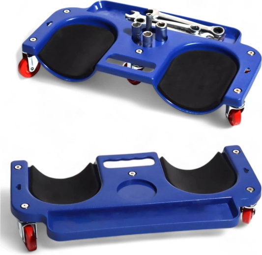 Ten solidny jeżdżący stołek na kolana łączy ergonomię, porządek i mobilność. Zintegrowana magnetyczna miska bezpiecznie utrzyma śruby, nakrętki i bity, więc niczego nie zgubisz. Udźwig 120 kg umożliwia wygodne siedzenie lub podparcie podczas dłuższych napraw i montażu.