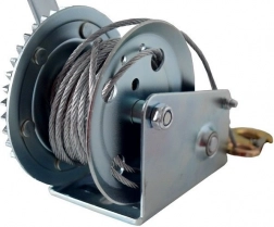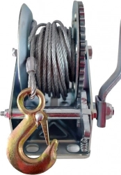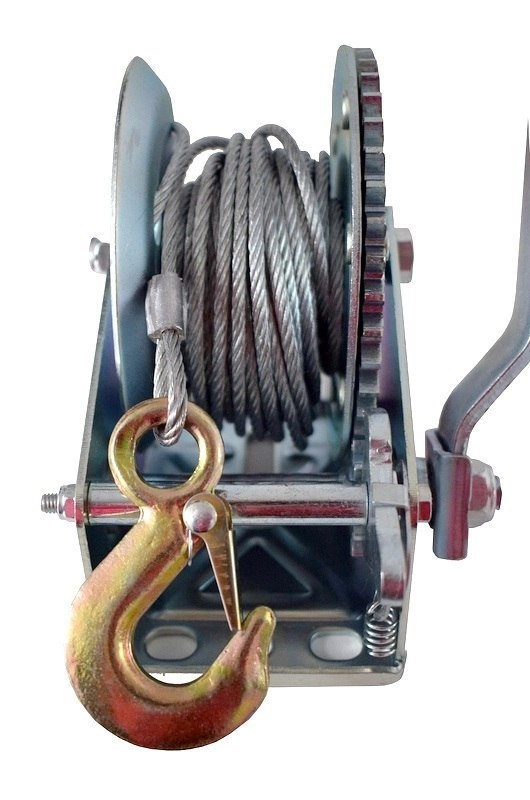 Kompaktowa ręczna wciągarka z liną stalową i mechanizmem zapadkowym do bezpiecznego ciągnięcia i opuszczania. Idealna do mniejszych pojazdów, łodzi, quadów i motocykli. Dzięki niskiej masie jest łatwa do przenoszenia i zawsze pod ręką. Oferuje bezpieczną blokadę zapadkową, solidny hak z zamkiem oraz wygodną korbową rączkę.
