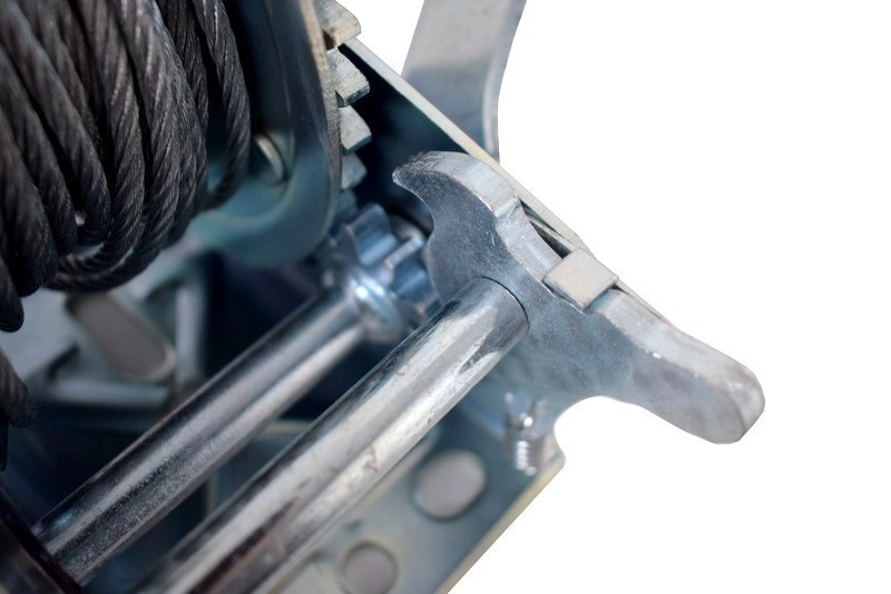 Zapadka z zatrzaskiem zapewnia kontrolowane nawijanie i rozwijanie oraz chroni przed niezamierzonym zwolnieniem ładunku.