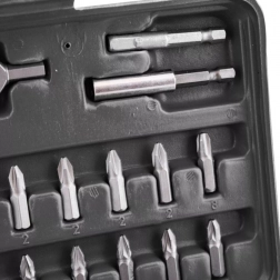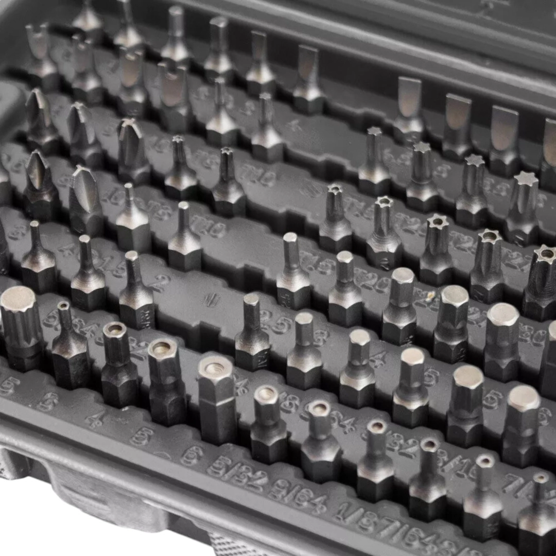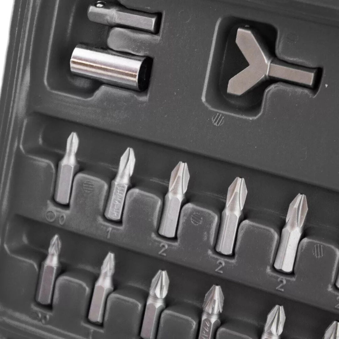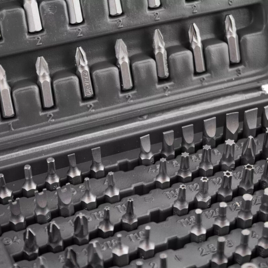 Solidne plastikowe etui utrzymuje każdy bit na swoim miejscu, dzięki czemu masz zawsze porządek i szybki dostęp. Dzięki kompaktowym wymiarom zestaw idealnie nadaje się do warsztatu, samochodu i w podróż.