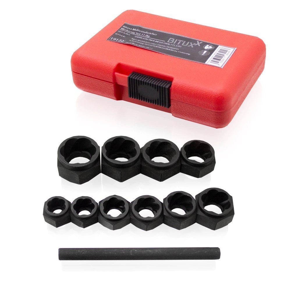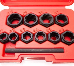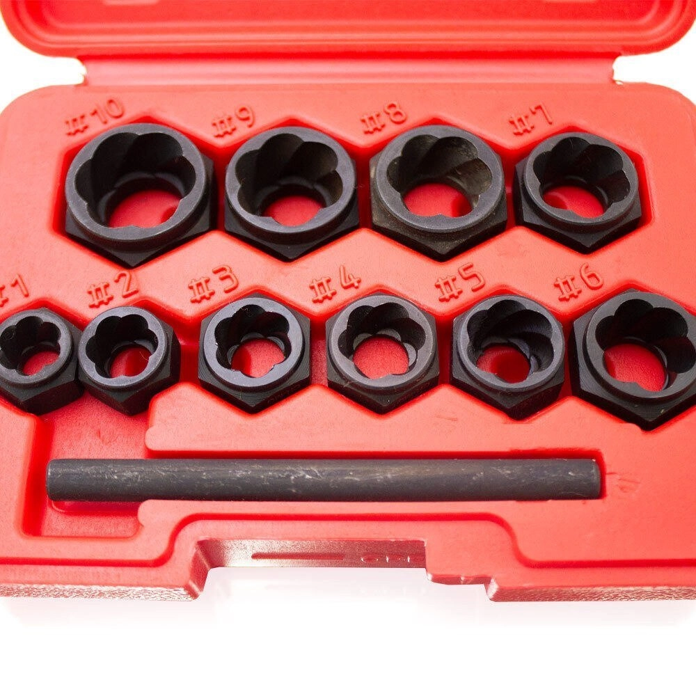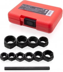 Ten profesjonalny zestaw wykrętaków do śrub i nakrętek został zaprojektowany do trudnych sytuacji, gdy łeb elementu złącznego jest uszkodzony lub zaokrąglony. Spiralne rowki wcinają się w powierzchnię i zwiększają chwyt wraz ze wzrostem obciążenia, dzięki czemu odkręcanie przebiega pewnie i pod kontrolą. Zestaw sprawdzi się w warsztacie, garażu i w terenie.