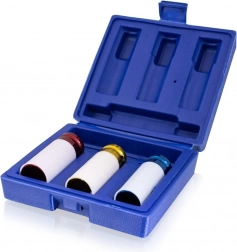 Trzy nasadki 17/19/21 mm z ochronną powłoką przeciw zarysowaniom powierzchni są umieszczone w solidnym etui dla łatwej organizacji.