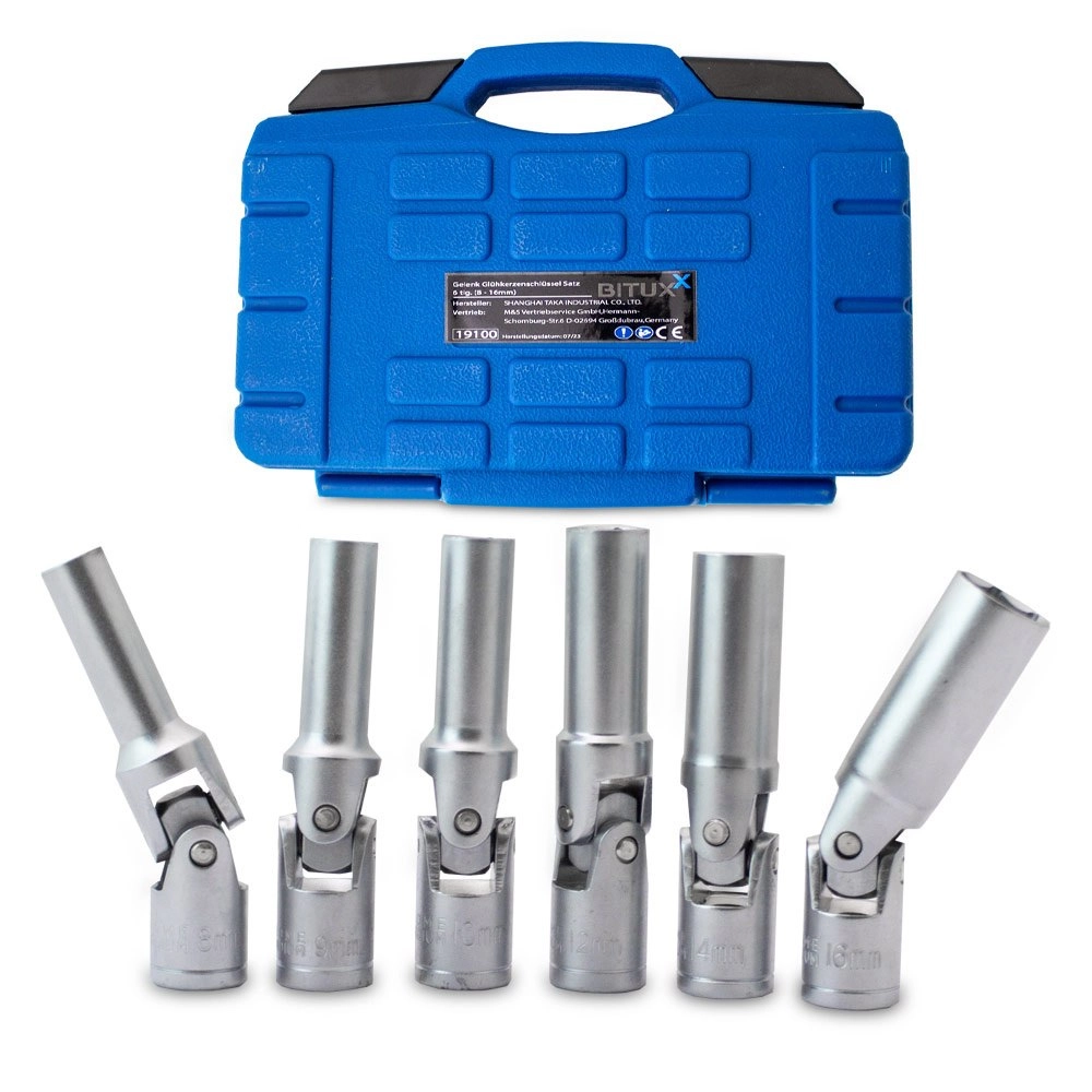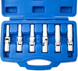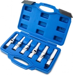Ten wysokiej jakości zestaw kluczy do świec żarowych zawiera wszystko, czego potrzebujesz do szybkiej i bezpiecznej wymiany. Dzięki przegubowym nasadkom z łatwością dotrzesz także do wąskich przestrzeni komory silnika, a praktyczny kufer utrzyma wszystko w przejrzystym porządku. Materiał z stali chromowo‑wanadowej (CrV) gwarantuje długą żywotność i odporność na zużycie.