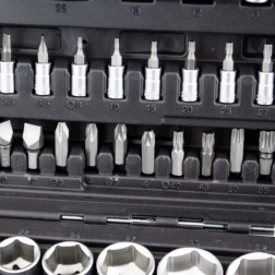 - Kompletny zestaw: system 1/4" i 1/2", szeroka gama rozmiarów i końcówek.