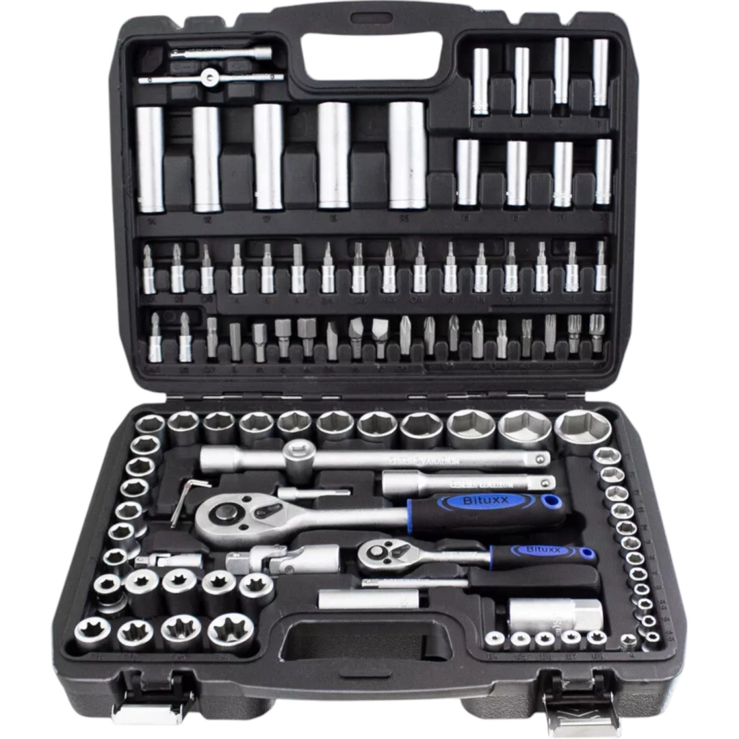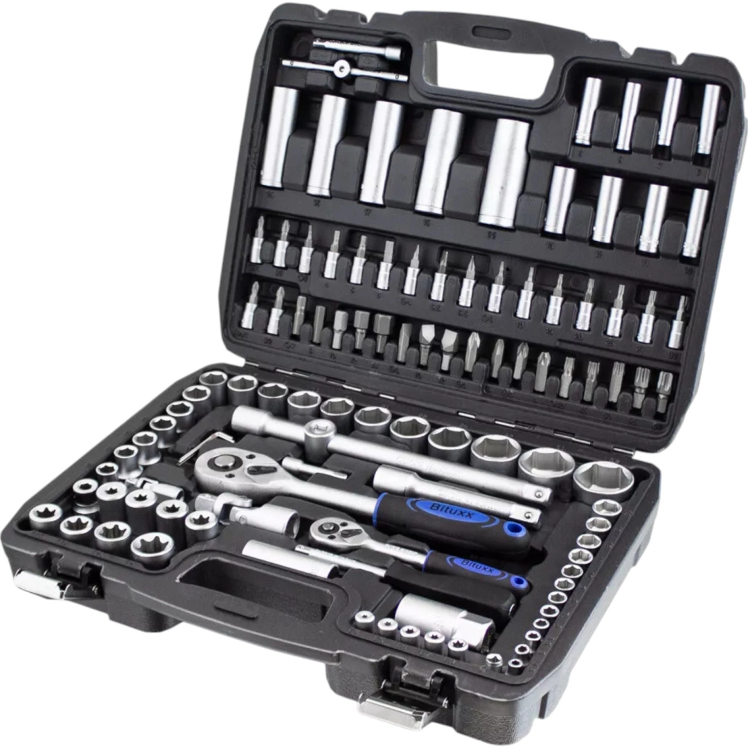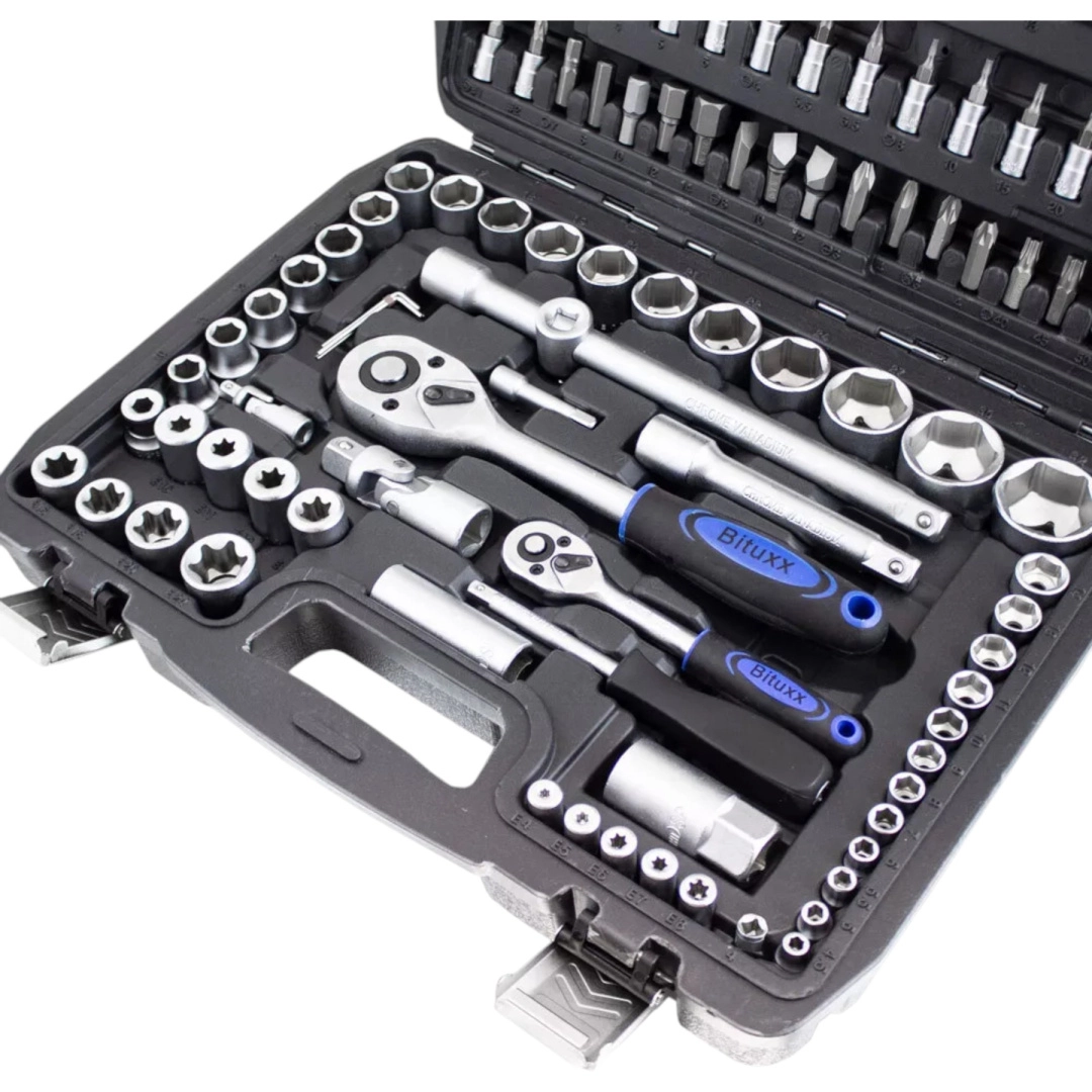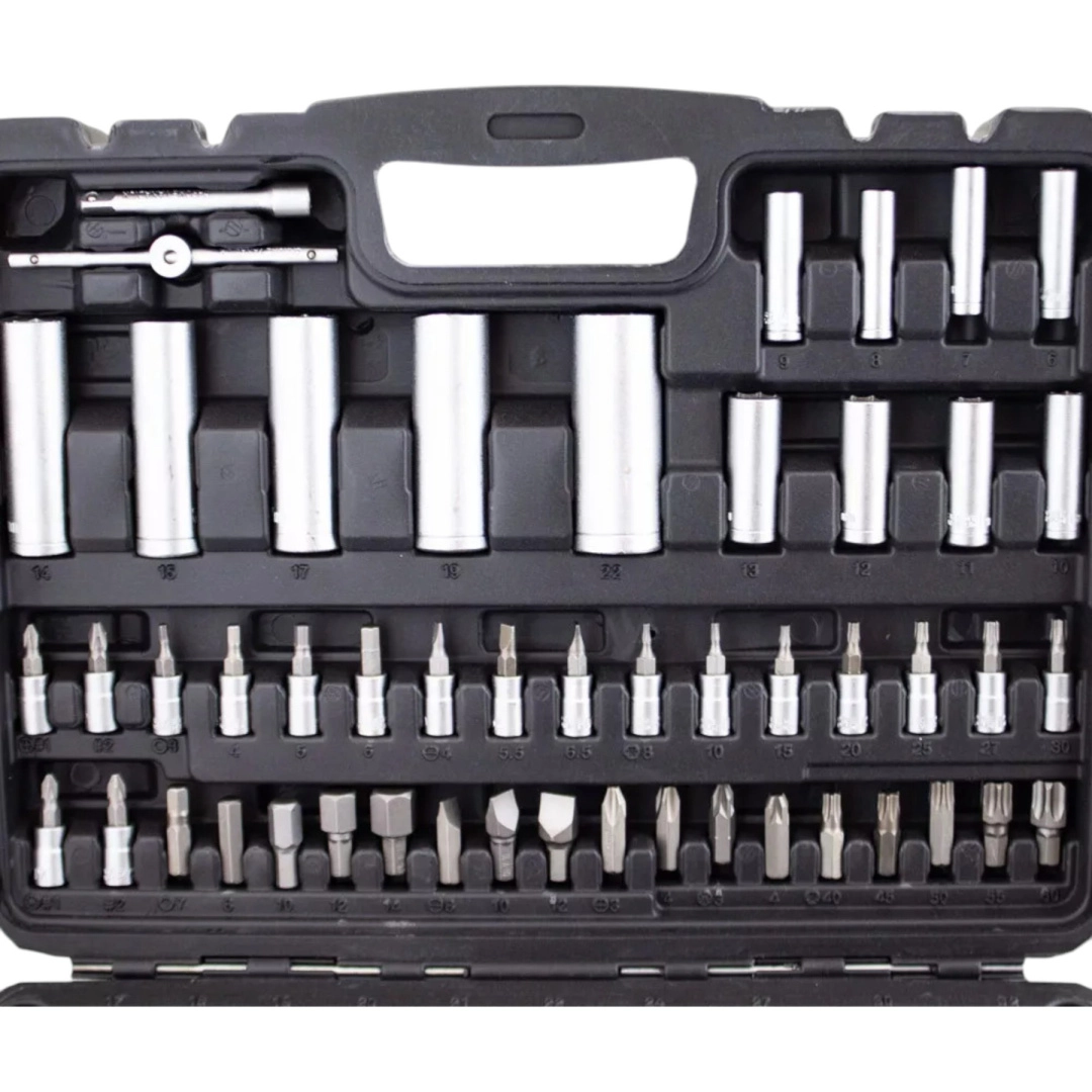 Profesjonalny zestaw kluczy nasadowych 108 elementów z wytrzymałej stali chromowo-wanadowej (CR‑V) oferuje wszystko, czego potrzebujesz do dokręcania i odkręcania połączeń w domu, warsztacie i serwisie samochodowym. Dwie grzechotki 1/4" i 1/2", szeroki wybór nasadek, bitów, przedłużek i przegubów oraz przejrzyste ułożenie w solidnym kufrze z ABS gwarantują szybką i efektywną pracę.