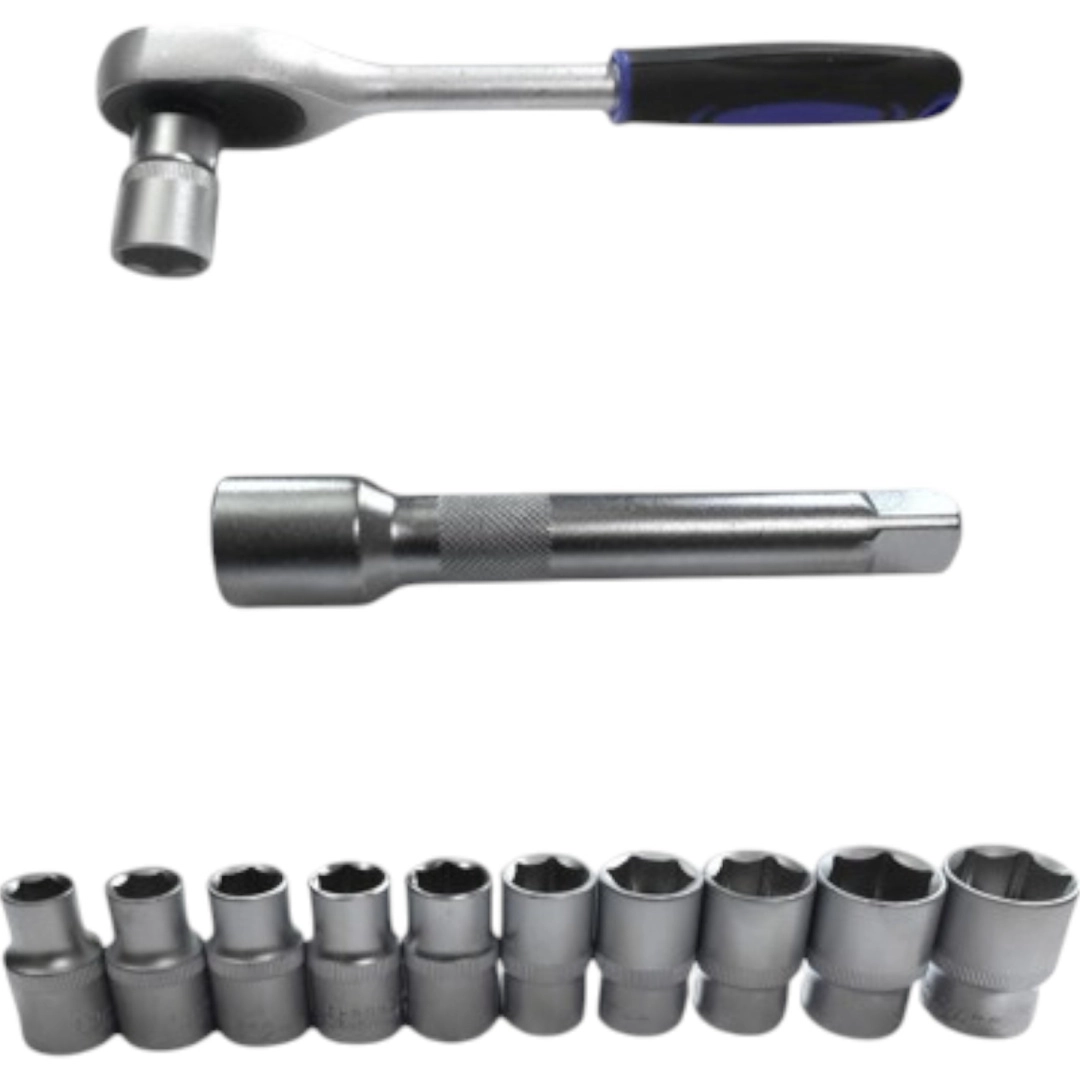 Zestaw zawiera 10 sześciokątnych nasadek w zakresie 10–24 mm do większości typowych połączeń w samochodzie, domu i warsztacie.