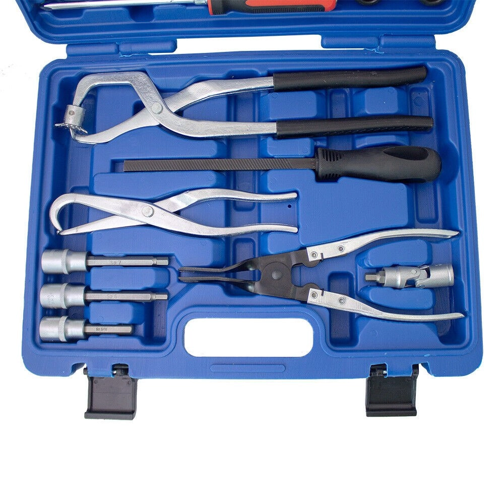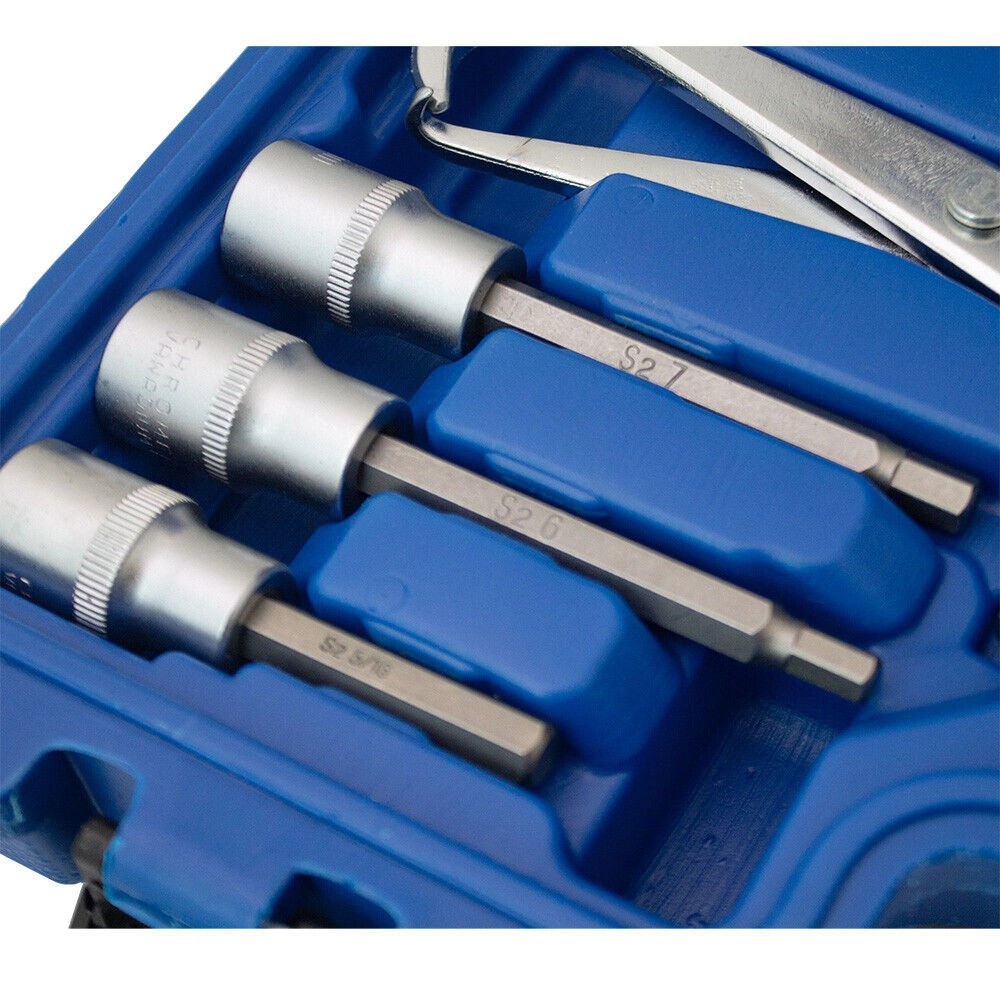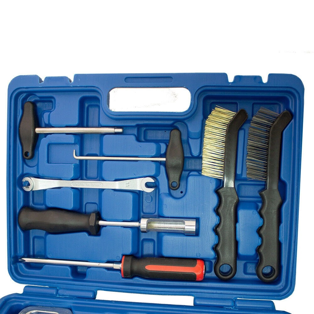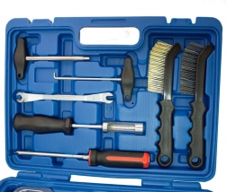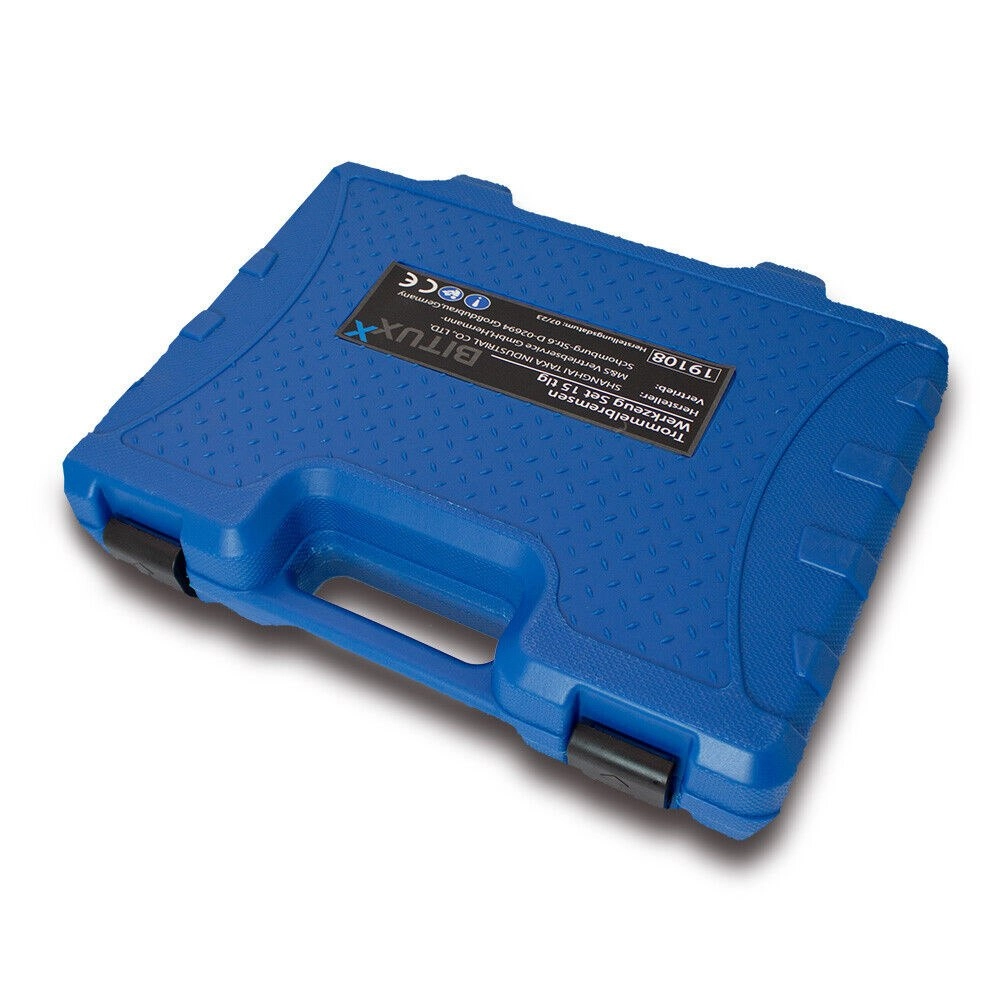 Kompletny 15‑częściowy zestaw do konserwacji i napraw hamulców bębnowych w praktycznej walizce. Zawiera specjalistyczne szczypce, haki, szczotki i bity do szybkiej, bezpiecznej i precyzyjnej pracy przy układzie hamulcowym.