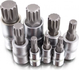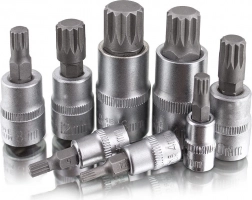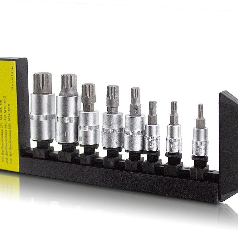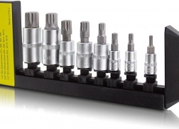 Każdy element ma wyraźnie oznaczony rozmiar dla szybkiego wyboru i jest umieszczony w praktycznym plastikowym uchwycie, który utrzymuje zestaw w porządku i w gotowości do użycia. Zestaw obejmuje popularne rozmiary spline/torx do pracy ze współczesnymi elementami złącznymi.