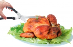 Idealny pomocnik podczas przygotowywania pieczonego lub grillowanego kurczaka – czyste cięcia bez kruszenia mięsa.