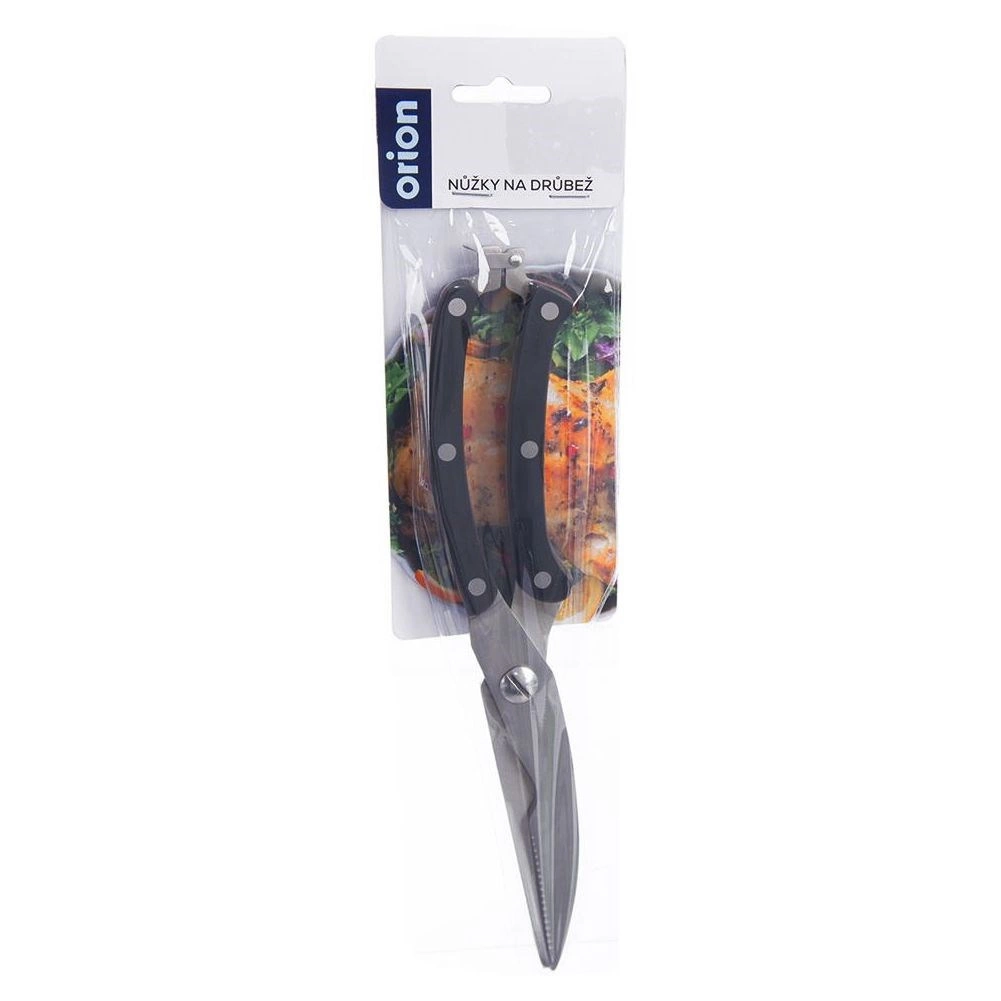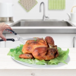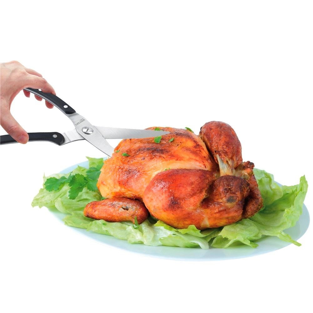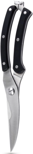 Wytrzymałe kuchenne nożyce do drobiu ze stali nierdzewnej o długości 24,5 cm ułatwiają krojenie surowego i pieczonego mięsa. Mają ergonomiczne uchwyty, ostre stalowe ostrza, zamek bezpieczeństwa dla łatwego i bezpiecznego przechowywania oraz solidną konstrukcję zapewniającą długą żywotność.